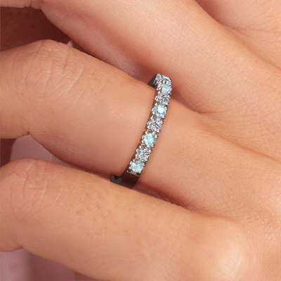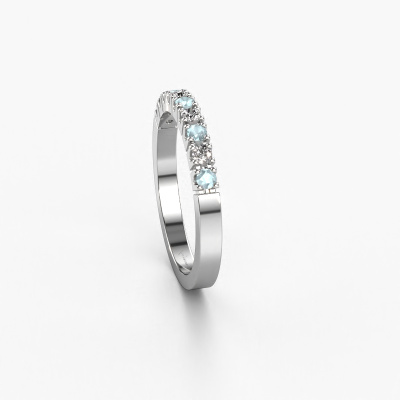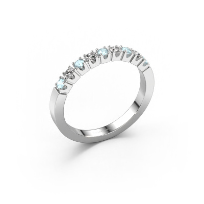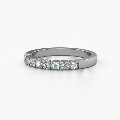 Dieser 9 Stone Ring wird Dana 9 genannt. Diese Art von Ring wird als Memoire ring bezeichnet, da seine Edelsteine in einer durchgehenden Linie angeordnet sind. Dadurch kann er einfach mit anderen Ringen kombiniert werden. Das Band dieses 14 Karat Weißgold Ring ist in einer Kombination aus Aquamarin und Diamant besetzt. Sie können ganz einfach online die Kombination auswählen, die Sie bevorzugen. Wie Sie sehen, wird bei diesem Weißgold Memoire Ring mehre Aquamarins gesetzt. Der Memoire ring steht für Zusammenwirken. Und genau das tun diese Edelsteine, zusammenwirken. Zusammen geben sie dem Band eines moderne Ring einen schönen Effekt! So ein bedeutungsvoller Ring, finden Sie nicht auch? Alle von uns ausgesuchten Aquamarins werden von unserem erfahrenen Goldschiede in Handarbeit eingefasst. Das ist eine präzise Aufgabe, die nur durch die Kombination von purer Handwerkskunst und dem Einsatz neuester Techniken erfolgreich durchgeführt werden kann, um eine optimale Wirkung zu erzielen. Um eine perfekte Lichtreflexion zu erzeugen, müssen alle Edelsteine auf die gleiche Weise perfekt ausgerichtet sein. Während der Fertigung wird der Goldschmied Meister daher ständig die Lichtreflexion überwachen, um zu gewährleisten, dass die Aquamarins perfekt ausgerichtet sind. Das erfordert eine geschickte Hand und viel Geduld, aber dann wird das Endprodukt zu einem echten Kunstwerk. Und genau das ist unsere Mission!Nach Erhalt Ihrer Bestellung beginnen unsere Goldschmiede mit Leidenschaft den kreativen Prozess und fertigen Ihren Ring in unserem eigenen Studio. Da wir keine großen Lager haben, werden diese Kosten nicht an Sie weitergegeben. Unsere Preisgestaltung ist der Beweis dafür! Wir bieten Schmuck zum niedrigsten Preis, garantiert.Unsere talentierten, leidenschaftlichen Designer fügen unserer Online-Kollektion täglich neue Designs hinzu. Zusammen versuchen sie, eine vielfältige Kollektion feinster Schmuckstücke zu erstellen. Wenn Sie es vorziehen, einen Ring nach Ihrem eigenen Entwurf zu machen, können Sie gerne ein Angebot anfordern. Wir machen Ihnen ein großartiges Angebot, basierend auf Qualität und Preis.Um es einfacher zu machen, bieten wir eine kostenlose 30-tägige Rücksendung.
