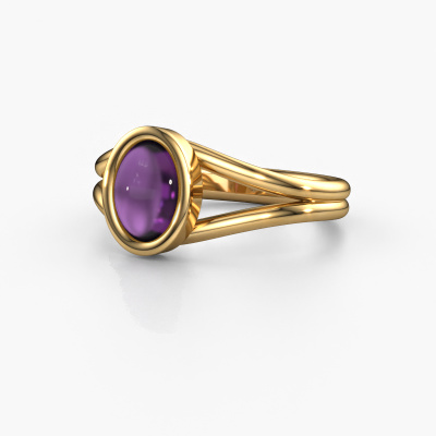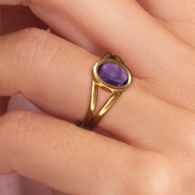 In diesem Foto ist der Gold Lieselotte Ring mit einem 9x7 mm oval cabochon Amethyst besetzt. Cabochon bedeutet, dass ein Amethyst zuerst geformt, nicht facettiert wird. Nämlich in eine bestimmte Form wie einen Tropfen, ein Herz oder ein oval cabochon. Anschließend wird er poliert, bis der Edelstein eine Runde Oberfläche hat. Ein Cabochon-Edelstein ist ein atemberaubender, nobler Blickfang, der perfekt zu einem zeitgenössischen wie auch zu einem Vintage-Stil passt. Unsere erfahrenen Goldschmiede formen den charmant Ring bis zur Perfektion und machen ihn einzigartig. Der Cabochon Amethyst ist so gefasst, dass seine einzigartigen Qualitäten verstärkt werden. Wie gefällt Ihnen dieser Fantasie Gold Ring? Passen Sie diesen Lieselotte Ring einfach mit unserem Online-Tool an. Anschließend wird Ihr persönlicher, charmant Lieselotte Ring in Handarbeit von unseren Goldschmieden angefertigt. Edelmetalle und Edelsteine können nach Ihren Wünschen angepasst werden. Haben Sie spezielle Wünsche, die in unserem Online-Tool nicht verfügbar sind? Setzen Sie sich mit uns in Verbindung. Wir passen Ihren persönlichen Fantasie Ring nach Ihren Wünschen an.Nach Erhalt Ihrer Bestellung beginnen unsere Goldschmiede mit Leidenschaft den kreativen Prozess und fertigen Ihren Ring in unserem eigenen Studio. Da wir keine großen Lager haben, werden diese Kosten nicht an Sie weitergegeben. Unsere Preisgestaltung ist der Beweis dafür! Wir bieten Schmuck zum niedrigsten Preis, garantiert.Um es einfacher zu machen, bieten wir eine kostenlose 30-tägige Rücksendung.