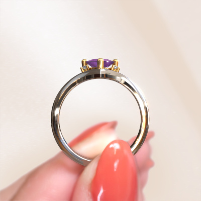 Dieser Ring namens Arlette besteht aus 14 Karat Weißgold und ist mit Amethyst besetzt. Sind Sie auf der Suche nach einem einzigartigen Weißgold Ring mit moderner Note? Dann könnte dieser Ring zu Ihnen passen. Einfach nach Ihren Wünschen