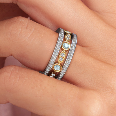 Haben Sie einen Vintage-Fetisch? Dann passt dieser Weißgold Ring perfekt zu Ihnen. Er hat ein zeitgemäßes Design, basierend auf klassischen Designs. Ein leicht romantisches, außergewöhnliches Design! Sogar noch mehr, wenn Sie ihn nach Ihren Wünschen anpassen. Dieser besondere Jessica Ring ist mit exquisiten Aquamarins besetzt. Wie Sie sehen können, können Sie einfach einen Edelstein wählen, der zu Ihrem Stil passt. Jeder Edelstein wird sorgfältig von unseren Händlern ausgewählt, die auf der ganzen Welt verteilt sind. Nichts als die besten Edelsteine für unseren erfahrenen Goldschiede! Schließlich ist es seine Krönung!Der besondere Jessica Ring, wie hier abgebildet, kann ganz nach Ihren Wünschen gestaltet werden. Unser Online-Tool bietet viele verschiedene Möglichkeiten. Bitte kontaktieren Sie uns, wenn Sie Änderungen an Ihrem Jessica Ring wünschen, die in unserem Online-Tool nicht verfügbar sind.Da wir unsere eigenen Ringe entwerfen und liefern, können wir Ihnen einen Ring zu einem Preis anbieten, den Sie nirgendwo anders finden. Ein Ring wird auf Bestellung angefertigt, wodurch kein überschüssiges Material anfällt. So können wir Ihnen ein gutes Angebot zum besten Preis machen. Wir verstehen, dass es sich riskant anfühlt, Ihren Ring online zu kaufen. Jedoch helfen wir Ihnen gerne beim Designprozess unter Berücksichtigung Ihres Budgets.Um es einfacher zu machen, bieten wir eine kostenlose 30-tägige Rücksendung.