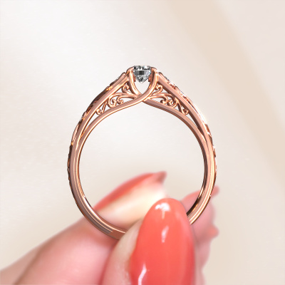 Haben Sie einen Vintage-Fetisch? Dann passt dieser Roségold Ring perfekt zu Ihnen. Er hat ein zeitgemäßes Design, basierend auf klassischen Designs. Ein leicht romantisches, außergewöhnliches Design! Sogar noch mehr, wenn Sie ihn nach Ihren Wünschen anpassen. Dieser besondere Quinty Ring ist mit exquisiten Diamanten besetzt. Wie Sie sehen können, können Sie einfach einen Edelstein wählen, der zu Ihrem Stil passt. Jeder Edelstein wird sorgfältig von unseren Händlern ausgewählt, die auf der ganzen Welt verteilt sind. Nichts als die besten Edelsteine für unseren erfahrenen Goldschiede! Schließlich ist es seine Krönung!Der besondere Quinty Ring, wie hier abgebildet, kann ganz nach Ihren Wünschen gestaltet werden. Unser Online-Tool bietet viele verschiedene Möglichkeiten. Bitte kontaktieren Sie uns, wenn Sie Änderungen an Ihrem Quinty Ring wünschen, die in unserem Online-Tool nicht verfügbar sind.Durch die Kombination modernster Technik mit uralter Handwerkskunst können wir alle Ringe in unserem eigenen Studio anfertigen. Jedes Schmuckstück wird auf Anfrage gefertigt. Das ist vorteilhaft, weil wir Ihnen dadurch einen Preis anbieten können, den Sie nirgendwo anders finden.Um es einfacher zu machen, bieten wir eine kostenlose 30-tägige Rücksendung.