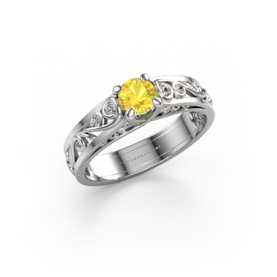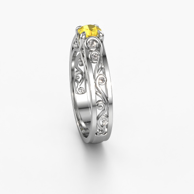 Haben Sie einen Vintage-Fetisch? Dann passt dieser Weißgold Ring perfekt zu Ihnen. Er hat ein zeitgemäßes Design, basierend auf klassischen Designs. Ein leicht romantisches, außergewöhnliches Design! Sogar noch mehr, wenn Sie ihn nach Ihren Wünschen anpassen. Dieser besondere Quinty Ring ist mit exquisiten Gelb Saphir besetzt. Wie Sie sehen können, können Sie einfach einen Edelstein wählen, der zu Ihrem Stil passt. Jeder Edelstein wird sorgfältig von unseren Händlern ausgewählt, die auf der ganzen Welt verteilt sind. Nichts als die besten Edelsteine für unseren erfahrenen Goldschiede! Schließlich ist es seine Krönung!Der besondere Quinty Ring, wie hier abgebildet, kann ganz nach Ihren Wünschen gestaltet werden. Unser Online-Tool bietet viele verschiedene Möglichkeiten. Bitte kontaktieren Sie uns, wenn Sie Änderungen an Ihrem Quinty Ring wünschen, die in unserem Online-Tool nicht verfügbar sind.Durch die Kombination modernster Technik mit uralter Handwerkskunst können wir alle Ringe in unserem eigenen Studio anfertigen. Jedes Schmuckstück wird auf Anfrage gefertigt. Das ist vorteilhaft, weil wir Ihnen dadurch einen Preis anbieten können, den Sie nirgendwo anders finden.Um es einfacher zu machen, bieten wir eine kostenlose 30-tägige Rücksendung.
