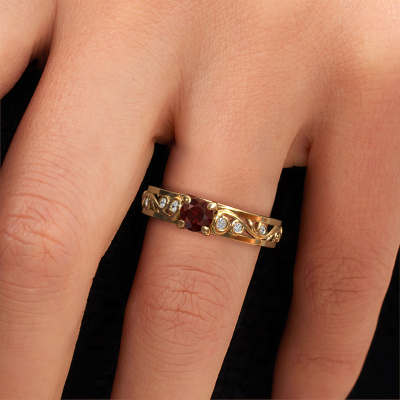 Haben Sie einen Vintage-Fetisch? Dann passt dieser Gold Ring perfekt zu Ihnen. Er hat ein zeitgemäßes Design, basierend auf klassischen Designs. Ein leicht romantisches, außergewöhnliches Design! Sogar noch mehr, wenn Sie ihn nach Ihren Wünschen anpassen. Dieser besondere Quinty Ring ist mit exquisiten Granat besetzt. Wie Sie sehen können, können Sie einfach einen Edelstein wählen, der zu Ihrem Stil passt. Jeder Edelstein wird sorgfältig von unseren Händlern ausgewählt, die auf der ganzen Welt verteilt sind. Nichts als die besten Edelsteine für unseren erfahrenen Goldschiede! Schließlich ist es seine Krönung!Der besondere Quinty Ring, wie hier abgebildet, kann ganz nach Ihren Wünschen gestaltet werden. Unser Online-Tool bietet viele verschiedene Möglichkeiten. Bitte kontaktieren Sie uns, wenn Sie Änderungen an Ihrem Quinty Ring wünschen, die in unserem Online-Tool nicht verfügbar sind.Durch die Kombination modernster Technik mit uralter Handwerkskunst können wir alle Ringe in unserem eigenen Studio anfertigen. Jedes Schmuckstück wird auf Anfrage gefertigt. Das ist vorteilhaft, weil wir Ihnen dadurch einen Preis anbieten können, den Sie nirgendwo anders finden.Um es einfacher zu machen, bieten wir eine kostenlose 30-tägige Rücksendung.