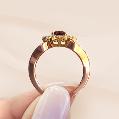 Wie würden Sie Ihren eigenen Stil beschreiben? Suchen Sie nach etwas Einzigartigem? Dieser besondere Roségold Ring ist erstaunlich! Einfach nach Ihren eigenen Wünschen anpassen. Dieser Chasidy 2 Ring wird mit Granat besetzt. Diese Granat wurden sorgfältig ausgewählt, denn Ihr Ring darf nur mit dem schönsten Edelstein gekrönt werden. Sehen Sie das auch so? Unser erfahrener Goldschiede kreiert Ihren Ring in unserem eigenen Studio, wo der Granat mit Sorgfalt gesetzt wird. Der Ring wird dann perfekt poliert, um ihm extra Glanz zu verleihen. Es ist ein perfekter Ring für eine Frau mit ausgezeichnetem Geschmack!Sobald Sie Ihren Chasidy 2 Ring mit unserem Online-Tool fertiggestellt haben, beginnen unsere Goldschmiede mit der kreativen Anfertigung Ihres Ringes. Dieser wird mit Leidenschaft und Sorgfalt nach alter Handwerkskunst gefertigt. Darüber arbeiten wir mit ehrlichen Edelsteinen. Einfach online mit unserem Online-Tool anpassen, wenn Sie Änderungen wünschen. Wenn Sie spezielle Änderungen an Ihrem Chasidy 2 Roségold Ring vornehmen möchten, die in unserem Online-Tool nicht verfügbar sind, wenden Sie sich bitte an unsere Experten.Durch die Kombination modernster Technik mit uralter Handwerkskunst können wir alle Ringe in unserem eigenen Studio anfertigen. Jedes Schmuckstück wird auf Anfrage gefertigt. Das ist vorteilhaft, weil wir Ihnen dadurch einen Preis anbieten können, den Sie nirgendwo anders finden.Um es einfacher zu machen, bieten wir eine kostenlose 30-tägige Rücksendung.