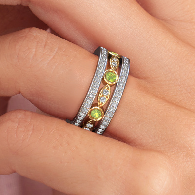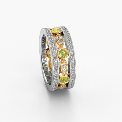 Haben Sie einen Vintage-Fetisch? Dann passt dieser Weißgold Ring perfekt zu Ihnen. Er hat ein zeitgemäßes Design, basierend auf klassischen Designs. Ein leicht romantisches, außergewöhnliches Design! Sogar noch mehr, wenn Sie ihn nach Ihren Wünschen anpassen. Dieser besondere Jessica Ring ist mit exquisiten Peridot besetzt. Wie Sie sehen können, können Sie einfach einen Edelstein wählen, der zu Ihrem Stil passt. Jeder Edelstein wird sorgfältig von unseren Händlern ausgewählt, die auf der ganzen Welt verteilt sind. Nichts als die besten Edelsteine für unseren erfahrenen Goldschiede! Schließlich ist es seine Krönung!Der besondere Jessica Ring, wie hier abgebildet, kann ganz nach Ihren Wünschen gestaltet werden. Unser Online-Tool bietet viele verschiedene Möglichkeiten. Bitte kontaktieren Sie uns, wenn Sie Änderungen an Ihrem Jessica Ring wünschen, die in unserem Online-Tool nicht verfügbar sind.Da wir unsere eigenen Ringe entwerfen und liefern, können wir Ihnen einen Ring zu einem Preis anbieten, den Sie nirgendwo anders finden. Ein Ring wird auf Bestellung angefertigt, wodurch kein überschüssiges Material anfällt. So können wir Ihnen ein gutes Angebot zum besten Preis machen. Wir verstehen, dass es sich riskant anfühlt, Ihren Ring online zu kaufen. Jedoch helfen wir Ihnen gerne beim Designprozess unter Berücksichtigung Ihres Budgets.Um es einfacher zu machen, bieten wir eine kostenlose 30-tägige Rücksendung.
