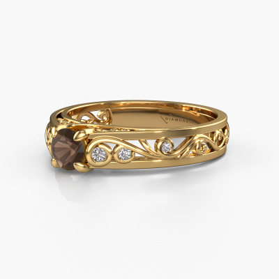 Haben Sie einen Vintage-Fetisch? Dann passt dieser Gold Ring perfekt zu Ihnen. Er hat ein zeitgemäßes Design, basierend auf klassischen Designs. Ein leicht romantisches, außergewöhnliches Design! Sogar noch mehr, wenn Sie ihn nach Ihren Wünschen anpassen. Dieser besondere Quinty Ring ist mit exquisiten Rauchquarz besetzt. Wie Sie sehen können, können Sie einfach einen Edelstein wählen, der zu Ihrem Stil passt. Jeder Edelstein wird sorgfältig von unseren Händlern ausgewählt, die auf der ganzen Welt verteilt sind. Nichts als die besten Edelsteine für unseren erfahrenen Goldschiede! Schließlich ist es seine Krönung!Der besondere Quinty Ring, wie hier abgebildet, kann ganz nach Ihren Wünschen gestaltet werden. Unser Online-Tool bietet viele verschiedene Möglichkeiten. Bitte kontaktieren Sie uns, wenn Sie Änderungen an Ihrem Quinty Ring wünschen, die in unserem Online-Tool nicht verfügbar sind.Durch die Kombination modernster Technik mit uralter Handwerkskunst können wir alle Ringe in unserem eigenen Studio anfertigen. Jedes Schmuckstück wird auf Anfrage gefertigt. Das ist vorteilhaft, weil wir Ihnen dadurch einen Preis anbieten können, den Sie nirgendwo anders finden.Um es einfacher zu machen, bieten wir eine kostenlose 30-tägige Rücksendung.