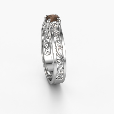 Haben Sie einen Vintage-Fetisch? Dann passt dieser Weißgold Ring perfekt zu Ihnen. Er hat ein zeitgemäßes Design, basierend auf klassischen Designs. Ein leicht romantisches, außergewöhnliches Design! Sogar noch mehr, wenn Sie ihn nach Ihren Wünschen anpassen. Dieser besondere Quinty Ring ist mit exquisiten Rauchquarz besetzt. Wie Sie sehen können, können Sie einfach einen Edelstein wählen, der zu Ihrem Stil passt. Jeder Edelstein wird sorgfältig von unseren Händlern ausgewählt, die auf der ganzen Welt verteilt sind. Nichts als die besten Edelsteine für unseren erfahrenen Goldschiede! Schließlich ist es seine Krönung!Der besondere Quinty Ring, wie hier abgebildet, kann ganz nach Ihren Wünschen gestaltet werden. Unser Online-Tool bietet viele verschiedene Möglichkeiten. Bitte kontaktieren Sie uns, wenn Sie Änderungen an Ihrem Quinty Ring wünschen, die in unserem Online-Tool nicht verfügbar sind.Durch die Kombination modernster Technik mit uralter Handwerkskunst können wir alle Ringe in unserem eigenen Studio anfertigen. Jedes Schmuckstück wird auf Anfrage gefertigt. Das ist vorteilhaft, weil wir Ihnen dadurch einen Preis anbieten können, den Sie nirgendwo anders finden.Um es einfacher zu machen, bieten wir eine kostenlose 30-tägige Rücksendung.