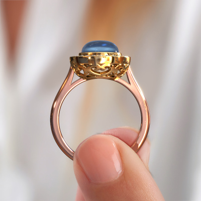 Suchen Sie einen reiche Ring mit einem auffälligen,einzelnen Edelstein? Wie gefällt Ihnen dieser Alisa Ring? Dieser Roségold Alisa Ring ist mit einem wunderschönen 8 mm rund cabochon Blau Topas besetzt. Der Blau Topas wird von unseren Blaue Topas-Lieferanten sorgfältig ausgewählt. Anschließend werden diese Edelsteine nach alter Tradition von unserem Goldschiede gesetzt. Der Ring wird dann zur Perfektion poliert und zu einem einzigartigen Ring mit einem atemberaubenden Blau Topas. Speziell für Sie angefertigt. Ein individueller, Fantasie reiche Ring ist das perfekte Geschenk! Unser Team von leidenschaftlichen Goldschmieden fügt täglich neue exquisite Designs hinzu. Und jedes Design kann angepasst werden. Passen Sie zum Beispiel einfach die Edelmetalle und die Farbe der verwendeten Edelsteine an. Das macht Ihr Design des Fantasie Alisa Ring wirklich einzigartig!Haben Sie ein bestimmtes Budget? Sie können uns gerne kontaktieren, damit wir Ihre Optionen besprechen können. Wir bieten unsere Ringe zum garantiert besten Preis, denn wir fertigen sie auf Bestellung. Solche Preise finden Sie nirgendwo anders!Um es einfacher zu machen, bieten wir eine kostenlose 30-tägige Rücksendung.