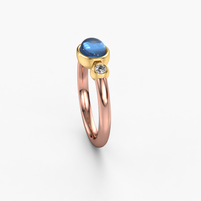 In diesem Foto ist der Roségold Liane Ring mit einem 7x5 mm oval cabochon Blau Topas besetzt. Cabochon bedeutet, dass ein Blau Topas zuerst geformt, nicht facettiert wird. Nämlich in eine bestimmte Form wie einen Tropfen, ein Herz oder ein oval cabochon. Anschließend wird er poliert, bis der Edelstein eine Runde Oberfläche hat. Ein Cabochon-Edelstein ist ein atemberaubender, nobler Blickfang, der perfekt zu einem zeitgenössischen wie auch zu einem Vintage-Stil passt. Unsere erfahrenen Goldschmiede formen den zierliche Ring bis zur Perfektion und machen ihn einzigartig. Der Cabochon Blau Topas ist so gefasst, dass seine einzigartigen Qualitäten verstärkt werden. Unsere Goldschmiede kreieren Ihren individuellen Ring leidenschaftlich, mit größter Sorgfalt und nach Ihren Wünschen. Das Roségold Ring, wie hier abgebildet, kann mit unserem Online-Tool individuell angepasst werden. Bitte fragen Sie unsere Schmuckdesigner um Hilfe, wenn Sie Änderungen wünsche, die in unserem Online-Tool nicht verfügbar sind. Gerne beantworten wir Ihnen alle offenen Fragen.Durch die Kombination modernster Technik mit uralter Handwerkskunst können wir alle Ringe in unserem eigenen Studio anfertigen. Jedes Schmuckstück wird auf Anfrage gefertigt. Das ist vorteilhaft, weil wir Ihnen dadurch einen Preis anbieten können, den Sie nirgendwo anders finden.Um es einfacher zu machen, bieten wir eine kostenlose 30-tägige Rücksendung.