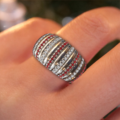 Das ist ein atemberaubender, breite Weißgold Dawn 12mm Ring. Er ist mit Rubin besetzt. Ein Designer-Ring, passend für noble Frauen. Der Ring wurde von unseren eigenen Goldschmieden entworfen. In unserem Atelier verwenden wir eine Kombination aus den neuesten Techniken und traditioneller Handwerkskunst, sodass wir einen perfekt gestalteten Ring kreieren können. Unsere erfahrenen Goldschmiede streben nach Perfektion und werden nicht aufhören, bis ein perfekter Ring geschaffen ist, ein wahres Kunstwerk. Ein einzigartiger Ring, der zu Ihrem eigenen Stil passt. Der breite Dawn 12mm Ring, wie hier abgebildet, kann ganz nach Ihren Wünschen gestaltet werden. Unser Online-Tool bietet viele verschiedene Möglichkeiten. Bitte kontaktieren Sie uns, wenn Sie Änderungen an Ihrem Dawn 12mm Ring wünschen, die in unserem Online-Tool nicht verfügbar sind.Durch die Kombination modernster Technik mit uralter Handwerkskunst können wir alle Ringe in unserem eigenen Studio anfertigen. Jedes Schmuckstück wird auf Anfrage gefertigt. Das ist vorteilhaft, weil wir Ihnen dadurch einen Preis anbieten können, den Sie nirgendwo anders finden.Um es einfacher zu machen, bieten wir eine kostenlose 30-tägige Rücksendung.