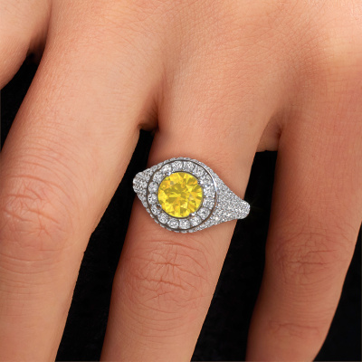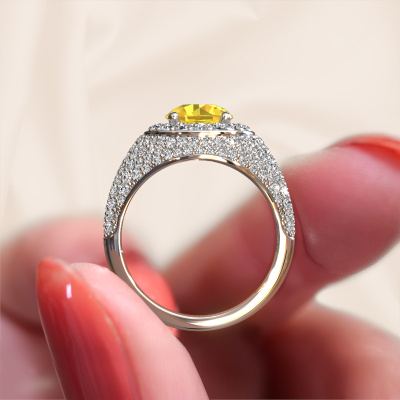 Dieser Ring mit Pavé-Fassung wird Dayle genannt. Dieser Ring aus Platin ist komplett rund mit Gelb Saphir 7 mm besetzt. Das Band dieses Platin Ring ist mit Reihen von Gelb Saphir besetzt, die weder Anfang noch Ende zu haben scheinen. Unser Goldschiede wählt die Edelsteine sorgfältig aus und setzt sie mit höchster Präzision. Für maximalen Glanz müssen die Gelb Saphir perfekt ausgerichtet sein. Beim kunstvollen Fertigen und Polieren des Schmucks wird der Lichteinfall ständig überwacht, bis der Goldschmiedemeister mit dem Ergebnis zufrieden ist. Von Ihnen entworfen, speziell für Sie gefertigt!Sobald Sie Ihren Dayle Ring mit unserem Online-Tool fertiggestellt haben, beginnen unsere Goldschmiede mit der kreativen Anfertigung Ihres Ringes. Dieser wird mit Leidenschaft und Sorgfalt nach alter Handwerkskunst gefertigt. Darüber arbeiten wir mit ehrlichen Edelsteinen. Einfach online mit unserem Online-Tool anpassen, wenn Sie Änderungen wünschen. Wenn Sie spezielle Änderungen an Ihrem Dayle Platin Ring vornehmen möchten, die in unserem Online-Tool nicht verfügbar sind, wenden Sie sich bitte an unsere Experten.Haben Sie ein bestimmtes Budget? Sie können uns gerne kontaktieren, damit wir Ihre Optionen besprechen können. Wir bieten unsere Ringe zum garantiert besten Preis, denn wir fertigen sie auf Bestellung. Solche Preise finden Sie nirgendwo anders!Um es einfacher zu machen, bieten wir eine kostenlose 30-tägige Rücksendung.