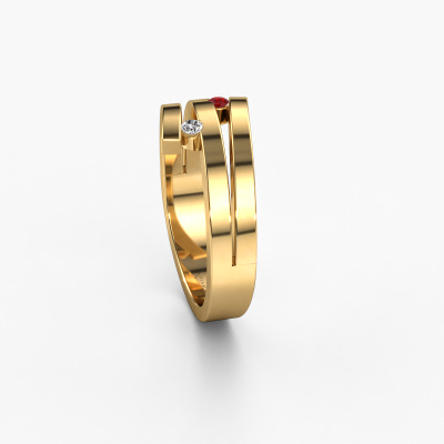 Dieser Ring namens Roxane besteht aus 14 Karat Gold und ist mit Rubin besetzt. Sind Sie auf der Suche nach einem einzigartigen Gold Ring mit moderner Note? Dann könnte dieser Ring zu Ihnen passen. Einfach nach Ihren Wünschen anpassen. Er passt zur zeitgenössischen, modernen Frau. Dieser elegante Ring ist mit wunderschönen Rubin besetzt. Er wurde sorgfältig ausgewählt. Weil Ihr Ring mit nichts als dem atemberaubendsten Edelstein gekrönt werden soll. Unser erfahrener Goldschiede kreiert Ihren Ring in unserem eigenen Studio, wo der Rubin mit großer Sorgfalt gesetzt wird. Der Ring wird dann perfekt poliert, um einen atemberaubenden Ring zu erhalten. Nach Erhalt Ihrer Bestellung beginnen unsere Goldschmiede mit Leidenschaft den kreativen Prozess und fertigen Ihren Ring in unserem eigenen Studio. Da wir keine großen Lager haben, werden diese Kosten nicht an Sie weitergegeben. Unsere Preisgestaltung ist der Beweis dafür! Wir bieten Schmuck zum niedrigsten Preis, garantiert.Unsere talentierten, leidenschaftlichen Designer fügen unserer Online-Kollektion täglich neue Designs hinzu. Zusammen versuchen sie, eine vielfältige Kollektion feinster Schmuckstücke zu erstellen. Wenn Sie es vorziehen, einen Ring nach Ihrem eigenen Entwurf zu machen, können Sie gerne ein Angebot anfordern. Wir machen Ihnen ein großartiges Angebot, basierend auf Qualität und Preis.Um es einfacher zu machen, bieten wir eine kostenlose 30-tägige Rücksendung.