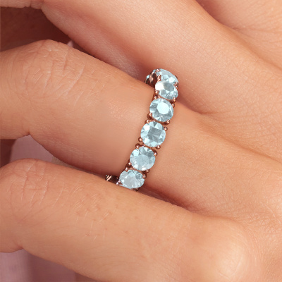Dieser Vivienne 4.0 Vorsteckring in 14 Karat Roségold ist mit Aquamarin besetzt. Dieser Roségold Vivienne 4.0 Ring ist die perfekte Ergänzung zu Ihrer Ring-Kollektion! Wie der Name schon sagt, ist es ein Ring, der an einem Finger mit einem anderen Ring kombiniert werden kann. Das gibt Ihnen die Möglichkeit, Ihren eigenen Stil zu schaffen. Ein Vorsteckring repräsentiert normalerweise eine bestimmte Erinnerung an jemand Besonderen, oder an einen denkwürdigen Moment. Es ist üblich, einen Vorsteckring, welcher ein Jubiläum darstellt, mit einem Trauring zu kombinieren. Aber dieser eternity Ring, kombiniert mit Ihren anderen Ringen, ist auch ein klassisches Modeobjekt. Ein individueller, moderne eternity Vorsteckring ist das perfekte Geschenk! Unser Team von leidenschaftlichen Goldschmieden fügt täglich neue exquisite Designs hinzu. Und jedes Design kann angepasst werden. Passen Sie zum Beispiel einfach die Edelmetalle und die Farbe der verwendeten Edelsteine an. Das macht Ihr Design des moderne Vivienne 4.0 Vorsteckring wirklich einzigartig!Da wir unsere eigenen Ringe entwerfen und liefern, können wir Ihnen einen Ring zu einem Preis anbieten, den Sie nirgendwo anders finden. Ein Ring wird auf Bestellung angefertigt, wodurch kein überschüssiges Material anfällt. So können wir Ihnen ein gutes Angebot zum besten Preis machen. Wir verstehen, dass es sich riskant anfühlt, Ihren Ring online zu kaufen. Jedoch helfen wir Ihnen gerne beim Designprozess unter Berücksichtigung Ihres Budgets.Um es einfacher zu machen, bieten wir eine kostenlose 30-tägige Rücksendung.