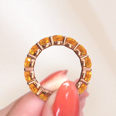 Das ist unser Heddy rnd 4.7-Ring. Dieser spezielle Typ wird als Eternity ring bezeichnet und ist mit einer durchgehenden Linie von identisch geschliffenen Edelsteinen besetzt. Er ist aus 14 Karat Roségold und mit kleineren Citrin 4.7 mm besetzt. Dieser Roségold Eternity Ring ist eine wunderschöne und sinnvolle Möglichkeit, Ihrem Antrag eine besondere Note zu verleihen. Die herrlich gleichmäßig geformten Citrin sind rund um den Ring eingefasst. Die identischen Citrin werden sorgfältig ausgewählt, um dem Ring eine maximale Wirkung zu verleihen. Denken Sie daran, dass wir natürliche Ressourcen verwenden. Daher sind kleine Unterschiede zwischen den Steinen üblich. Der besondere Effekt wird durch die präzise Positionierung der Citrin noch verstärkt. Dies erfordert äußerste Präzision und eine geschickte Hand. Für unsere erfahrenen Juweliere ist die pure Leidenschaft. Am Ende bekommen Sie einen Ring mit einer Reihe von Citrin, die weder Anfang noch Ende zu haben scheinen. Das perfekte Symbol für Ihre Liebe zu ihr! Ist sie nicht eine Schönheit? Da wir unsere eigenen Ringe entwerfen und liefern, können wir Ihnen einen Ring zu einem Preis anbieten, den Sie nirgendwo anders finden. Ein Ring wird auf Bestellung angefertigt, wodurch kein überschüssiges Material anfällt. So können wir Ihnen ein gutes Angebot zum besten Preis machen. Wir verstehen, dass es sich riskant anfühlt, Ihren Ring online zu kaufen. Jedoch helfen wir Ihnen gerne beim Designprozess unter Berücksichtigung Ihres Budgets.Unser Team von talentierten, leidenschaftlichen Designern fügt unserer Online-Kollektion täglich neue Ringe-Designs hinzu. Unser Ziel dabei ist es, Ihnen eine große Vielfalt an Schmuckstücken anbieten zu können. Bitte zögern Sie nicht, ein Angebot anzufordern, wenn Sie spezielle Wünsche für Ihren Ring haben. Wir garantieren Ihnen ein Angebot, das Sie nicht ablehnen können.Um es einfacher zu machen, bieten wir eine kostenlose 30-tägige Rücksendung.