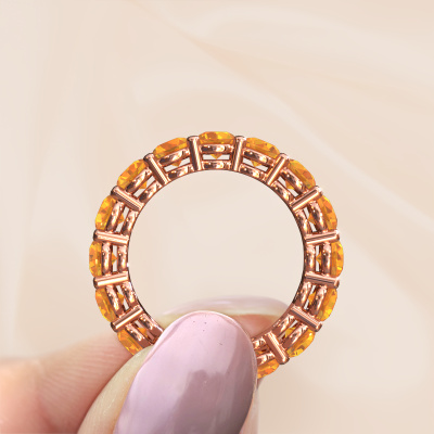 Das ist unser Michelle full 4.2-Ring. Dieser spezielle Typ wird als Eternity ring bezeichnet und ist mit einer durchgehenden Linie von identisch geschliffenen Edelsteinen besetzt. Er ist aus 14 Karat Roségold und mit kleineren Citrin 4.2 mm besetzt. Dieser Roségold Eternity Ring ist eine wunderschöne und sinnvolle Möglichkeit, Ihrem Antrag eine besondere Note zu verleihen. Die herrlich gleichmäßig geformten Citrin sind rund um den Ring eingefasst. Die identischen Citrin werden sorgfältig ausgewählt, um dem Ring eine maximale Wirkung zu verleihen. Denken Sie daran, dass wir natürliche Ressourcen verwenden. Daher sind kleine Unterschiede zwischen den Steinen üblich. Der besondere Effekt wird durch die präzise Positionierung der Citrin noch verstärkt. Dies erfordert äußerste Präzision und eine geschickte Hand. Für unsere erfahrenen Juweliere ist die pure Leidenschaft. Am Ende bekommen Sie einen Vorsteckring mit einer Reihe von Citrin, die weder Anfang noch Ende zu haben scheinen. Das perfekte Symbol für Ihre Liebe zu ihr! Ist sie nicht eine Schönheit? Nachdem Sie Ihre Bestellung aufgegeben haben, beginnen unsere Goldschmiede mit dem kreativen Prozess der Herstellung Ihres Michelle full 4.2 Ring. Wir haben keine Lager. Das ist vorteilhaft, da diese Kosten nicht an Sie weitergegeben werden. Daher sind wir in der Lage, Schmuck zu außergewöhnlich niedrigen Preisen anzubieten.Unsere Online-Kollektion wird täglich um neue Schmuckdesigns ergänzt. Unser Team von leidenschaftlichen Designern ist bemüht, außergewöhnliche und vielfältige Designs zu kreieren. Haben Sie einen Ring gesehen, der Ihnen gefällt? Setzen Sie sich mit uns in Verbindung. Basierend auf einem guten Preis/Leistungsverhältnis machen wir Ihnen ein Angebot, das Sie nicht ablehnen können!Um es einfacher zu machen, bieten wir eine kostenlose 30-tägige Rücksendung.