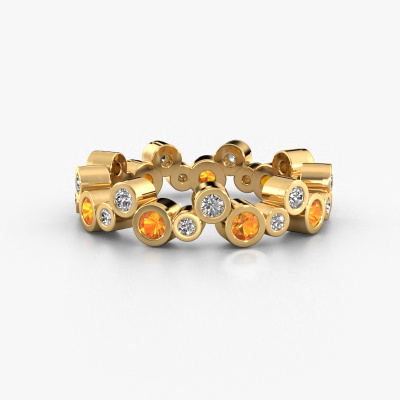 Das ist unser Tessa-Ring. Dieser spezielle Typ wird als Eternity ring bezeichnet und ist mit einer durchgehenden Linie von identisch geschliffenen Edelsteinen besetzt. Er ist aus 14 Karat Gold und mit kleineren Citrin 2.5 mm besetzt. Dieser Gold Eternity Ring ist eine wunderschöne und sinnvolle Möglichkeit, Ihrem Antrag eine besondere Note zu verleihen. Die herrlich gleichmäßig geformten Citrin sind rund um den Ring eingefasst. Die identischen Citrin werden sorgfältig ausgewählt, um dem Ring eine maximale Wirkung zu verleihen. Denken Sie daran, dass wir natürliche Ressourcen verwenden. Daher sind kleine Unterschiede zwischen den Steinen üblich. Der besondere Effekt wird durch die präzise Positionierung der Citrin noch verstärkt. Dies erfordert äußerste Präzision und eine geschickte Hand. Für unsere erfahrenen Juweliere ist die pure Leidenschaft. Am Ende bekommen Sie einen Ring mit einer Reihe von Citrin, die weder Anfang noch Ende zu haben scheinen. Das perfekte Symbol für Ihre Liebe zu ihr! Ist sie nicht eine Schönheit? Mit unserer modernen Technik können wir Schmuckstücke von höchster Qualität mit größter Sorgfalt für Sie entwerfen und anpassen. Unsere Ringe sind immer um 30 Prozent günstiger als bei anderen Juwelieren. Wir fertigen Ringe auf Bestellung, also müssen wir keine großen Lager unterhalten. Wenn Sie ein bestimmtes Budget haben, beraten wir Sie gerne entsprechend.Unsere talentierten, leidenschaftlichen Designer fügen unserer Online-Kollektion täglich neue Designs hinzu. Zusammen versuchen sie, eine vielfältige Kollektion feinster Schmuckstücke zu erstellen. Wenn Sie es vorziehen, einen Ring nach Ihrem eigenen Entwurf zu machen, können Sie gerne ein Angebot anfordern. Wir machen Ihnen ein großartiges Angebot, basierend auf Qualität und Preis.Um es einfacher zu machen, bieten wir eine kostenlose 30-tägige Rücksendung.