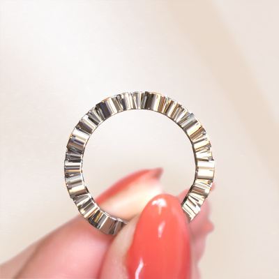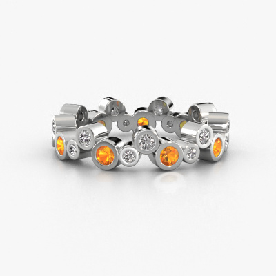 Das ist unser Tessa-Ring. Dieser spezielle Typ wird als Eternity ring bezeichnet und ist mit einer durchgehenden Linie von identisch geschliffenen Edelsteinen besetzt. Er ist aus 14 Karat Weißgold und mit kleineren Citrin 2.5 mm besetzt. Dieser Weißgold Eternity Ring ist eine wunderschöne und sinnvolle Möglichkeit, Ihrem Antrag eine besondere Note zu verleihen. Die herrlich gleichmäßig geformten Citrin sind rund um den Ring eingefasst. Die identischen Citrin werden sorgfältig ausgewählt, um dem Ring eine maximale Wirkung zu verleihen. Denken Sie daran, dass wir natürliche Ressourcen verwenden. Daher sind kleine Unterschiede zwischen den Steinen üblich. Der besondere Effekt wird durch die präzise Positionierung der Citrin noch verstärkt. Dies erfordert äußerste Präzision und eine geschickte Hand. Für unsere erfahrenen Juweliere ist die pure Leidenschaft. Am Ende bekommen Sie einen Ring mit einer Reihe von Citrin, die weder Anfang noch Ende zu haben scheinen. Das perfekte Symbol für Ihre Liebe zu ihr! Ist sie nicht eine Schönheit? Mit unserer modernen Technik können wir Schmuckstücke von höchster Qualität mit größter Sorgfalt für Sie entwerfen und anpassen. Unsere Ringe sind immer um 30 Prozent günstiger als bei anderen Juwelieren. Wir fertigen Ringe auf Bestellung, also müssen wir keine großen Lager unterhalten. Wenn Sie ein bestimmtes Budget haben, beraten wir Sie gerne entsprechend.Unsere talentierten, leidenschaftlichen Designer fügen unserer Online-Kollektion täglich neue Designs hinzu. Zusammen versuchen sie, eine vielfältige Kollektion feinster Schmuckstücke zu erstellen. Wenn Sie es vorziehen, einen Ring nach Ihrem eigenen Entwurf zu machen, können Sie gerne ein Angebot anfordern. Wir machen Ihnen ein großartiges Angebot, basierend auf Qualität und Preis.Um es einfacher zu machen, bieten wir eine kostenlose 30-tägige Rücksendung.