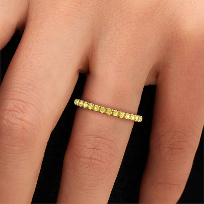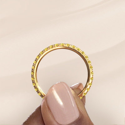 Das ist unser Jackie 1.7-Ring. Dieser spezielle Typ wird als Eternity ring bezeichnet und ist mit einer durchgehenden Linie von identisch geschliffenen Edelsteinen besetzt. Er ist aus 14 Karat Gold und mit kleineren Gelb Saphir 1.7 mm besetzt. Dieser Gold Eternity Ring ist eine wunderschöne und sinnvolle Möglichkeit, Ihrem Antrag eine besondere Note zu verleihen. Die herrlich gleichmäßig geformten Gelb Saphir sind rund um den Ring eingefasst. Die identischen Gelb Saphir werden sorgfältig ausgewählt, um dem Ring eine maximale Wirkung zu verleihen. Denken Sie daran, dass wir natürliche Ressourcen verwenden. Daher sind kleine Unterschiede zwischen den Steinen üblich. Der besondere Effekt wird durch die präzise Positionierung der Gelb Saphir noch verstärkt. Dies erfordert äußerste Präzision und eine geschickte Hand. Für unsere erfahrenen Juweliere ist die pure Leidenschaft. Am Ende bekommen Sie einen Vorsteckring mit einer Reihe von Gelb Saphir, die weder Anfang noch Ende zu haben scheinen. Das perfekte Symbol für Ihre Liebe zu ihr! Ist sie nicht eine Schönheit? Nach Erhalt Ihrer Bestellung beginnen unsere Goldschmiede mit Leidenschaft den kreativen Prozess und fertigen Ihren Ring in unserem eigenen Studio. Da wir keine großen Lager haben, werden diese Kosten nicht an Sie weitergegeben. Unsere Preisgestaltung ist der Beweis dafür! Wir bieten Schmuck zum niedrigsten Preis, garantiert.Unsere talentierten, leidenschaftlichen Designer fügen unserer Online-Kollektion täglich neue Designs hinzu. Zusammen versuchen sie, eine vielfältige Kollektion feinster Schmuckstücke zu erstellen. Wenn Sie es vorziehen, einen Ring nach Ihrem eigenen Entwurf zu machen, können Sie gerne ein Angebot anfordern. Wir machen Ihnen ein großartiges Angebot, basierend auf Qualität und Preis.Um es einfacher zu machen, bieten wir eine kostenlose 30-tägige Rücksendung.
