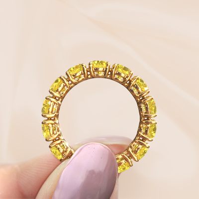 Das ist unser Vivienne 4.7-Ring. Dieser spezielle Typ wird als eternity Ring bezeichnet und ist mit einer durchgehenden Linie von identisch geschliffenen Edelsteinen besetzt. Er ist aus 14 Karat Gold und mit kleineren 4.7 mm Gelb Saphir besetzt. Die erstaunlichen Gelb Saphir sind identisch in der Größe und im Ringband platziert. Unsere Gelb Saphir werden sorgfältig ausgewählt, damit sie identisch sind und somit das beste Ergebnis erzielen. Um das beste Ergebnis zu erzielen, positioniert unser Juwelier alle Gelb Saphir von Hand und mit größter Sorgfalt. Unsere Juweliere haben nur ein Ziel, nämlich den perfekten Ring zu kreieren. Deshalb lieben wir, was wir tun. Am Ende bekommen Sie einen atemberaubenden, exklusive Gold Ring mit einer Reihe von Gelb Saphir, die weder Anfang noch Ende zu haben scheinen. Das perfekte Symbol für Ihre unsterbliche Liebe zu ihr! Ist sie nicht eine Schönheit? Nach Erhalt Ihrer Bestellung beginnen unsere Goldschmiede mit Leidenschaft den kreativen Prozess und fertigen Ihren Ring in unserem eigenen Studio. Da wir keine großen Lager haben, werden diese Kosten nicht an Sie weitergegeben. Unsere Preisgestaltung ist der Beweis dafür! Wir bieten Schmuck zum niedrigsten Preis, garantiert.Unsere talentierten, leidenschaftlichen Designer fügen unserer Online-Kollektion täglich neue Designs hinzu. Zusammen versuchen sie, eine vielfältige Kollektion feinster Schmuckstücke zu erstellen. Wenn Sie es vorziehen, einen Ring nach Ihrem eigenen Entwurf zu machen, können Sie gerne ein Angebot anfordern. Wir machen Ihnen ein großartiges Angebot, basierend auf Qualität und Preis.Um es einfacher zu machen, bieten wir eine kostenlose 30-tägige Rücksendung.
