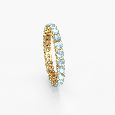 Das ist unser Michelle full 2.7-Ring. Dieser spezielle Typ wird als eternity Ring bezeichnet und ist mit einer durchgehenden Linie von identisch geschliffenen Edelsteinen besetzt. Er ist aus 14 Karat Gold und mit kleineren 2.7 mm Aquamarins besetzt. Die erstaunlichen Aquamarins sind identisch in der Größe und im Ringband platziert. Unsere Aquamarins werden sorgfältig ausgewählt, damit sie identisch sind und somit das beste Ergebnis erzielen. Um das beste Ergebnis zu erzielen, positioniert unser Juwelier alle Aquamarins von Hand und mit größter Sorgfalt. Unsere Juweliere haben nur ein Ziel, nämlich den perfekten Ring zu kreieren. Deshalb lieben wir, was wir tun. Am Ende bekommen Sie einen atemberaubenden, klassische Gold Vorsteckring mit einer Reihe von Aquamarins, die weder Anfang noch Ende zu haben scheinen. Das perfekte Symbol für Ihre unsterbliche Liebe zu ihr! Ist sie nicht eine Schönheit? Durch die Kombination modernster Technik mit uralter Handwerkskunst können wir alle Ringe in unserem eigenen Studio anfertigen. Jedes Schmuckstück wird auf Anfrage gefertigt. Das ist vorteilhaft, weil wir Ihnen dadurch einen Preis anbieten können, den Sie nirgendwo anders finden.Unsere Online-Kollektion wird täglich um neue Schmuckdesigns ergänzt. Unser Team von leidenschaftlichen Designern ist bemüht, außergewöhnliche und vielfältige Designs zu kreieren. Haben Sie einen Ring gesehen, der Ihnen gefällt? Setzen Sie sich mit uns in Verbindung. Basierend auf einem guten Preis/Leistungsverhältnis machen wir Ihnen ein Angebot, das Sie nicht ablehnen können!Um es einfacher zu machen, bieten wir eine kostenlose 30-tägige Rücksendung.