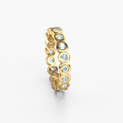 Das ist unser Edwina 2-Ring. Dieser spezielle Typ wird als eternity Ring bezeichnet und ist mit einer durchgehenden Linie von identisch geschliffenen Edelsteinen besetzt. Er ist aus 14 Karat Gold und mit kleineren 2.5 mm Aquamarins besetzt. Die erstaunlichen Aquamarins sind identisch in der Größe und im Ringband platziert. Unsere Aquamarins werden sorgfältig ausgewählt, damit sie identisch sind und somit das beste Ergebnis erzielen. Um das beste Ergebnis zu erzielen, positioniert unser Juwelier alle Aquamarins von Hand und mit größter Sorgfalt. Unsere Juweliere haben nur ein Ziel, nämlich den perfekten Ring zu kreieren. Deshalb lieben wir, was wir tun. Am Ende bekommen Sie einen atemberaubenden, trendige Gold Vorsteckring mit einer Reihe von Aquamarins, die weder Anfang noch Ende zu haben scheinen. Das perfekte Symbol für Ihre unsterbliche Liebe zu ihr! Ist sie nicht eine Schönheit? Mit unserer modernen Technik können wir Schmuckstücke von höchster Qualität mit größter Sorgfalt für Sie entwerfen und anpassen. Unsere Ringe sind immer um 30 Prozent günstiger als bei anderen Juwelieren. Wir fertigen Ringe auf Bestellung, also müssen wir keine großen Lager unterhalten. Wenn Sie ein bestimmtes Budget haben, beraten wir Sie gerne entsprechend.Unsere talentierten, leidenschaftlichen Designer fügen unserer Online-Kollektion täglich neue Designs hinzu. Zusammen versuchen sie, eine vielfältige Kollektion feinster Schmuckstücke zu erstellen. Wenn Sie es vorziehen, einen Ring nach Ihrem eigenen Entwurf zu machen, können Sie gerne ein Angebot anfordern. Wir machen Ihnen ein großartiges Angebot, basierend auf Qualität und Preis.Um es einfacher zu machen, bieten wir eine kostenlose 30-tägige Rücksendung.