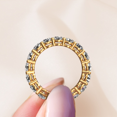 Das ist unser Michelle full 3.7-Ring. Dieser spezielle Typ wird als eternity Ring bezeichnet und ist mit einer durchgehenden Linie von identisch geschliffenen Edelsteinen besetzt. Er ist aus 14 Karat Gold und mit kleineren 0.20 crt Lab grown Diamant besetzt. Die erstaunlichen Lab grown Diamant sind identisch in der Größe und im Ringband platziert. Unsere Lab grown Diamant werden sorgfältig ausgewählt, damit sie identisch sind und somit das beste Ergebnis erzielen. Um das beste Ergebnis zu erzielen, positioniert unser Juwelier alle Lab grown Diamant von Hand und mit größter Sorgfalt. Unsere Juweliere haben nur ein Ziel, nämlich den perfekten Ring zu kreieren. Deshalb lieben wir, was wir tun. Am Ende bekommen Sie einen atemberaubenden, moderne Gold Vorsteckring mit einer Reihe von Lab grown Diamant, die weder Anfang noch Ende zu haben scheinen. Das perfekte Symbol für Ihre unsterbliche Liebe zu ihr! Ist sie nicht eine Schönheit? Da wir unsere eigenen Ringe entwerfen und liefern, können wir Ihnen einen Ring zu einem Preis anbieten, den Sie nirgendwo anders finden. Ein Ring wird auf Bestellung angefertigt, wodurch kein überschüssiges Material anfällt. So können wir Ihnen ein gutes Angebot zum besten Preis machen. Wir verstehen, dass es sich riskant anfühlt, Ihren Ring online zu kaufen. Jedoch helfen wir Ihnen gerne beim Designprozess unter Berücksichtigung Ihres Budgets.Unser Team von talentierten, leidenschaftlichen Designern fügt unserer Online-Kollektion täglich neue Ringe-Designs hinzu. Unser Ziel dabei ist es, Ihnen eine große Vielfalt an Schmuckstücken anbieten zu können. Bitte zögern Sie nicht, ein Angebot anzufordern, wenn Sie spezielle Wünsche für Ihren Ring haben. Wir garantieren Ihnen ein Angebot, das Sie nicht ablehnen können.Um es einfacher zu machen, bieten wir eine kostenlose 30-tägige Rücksendung.
