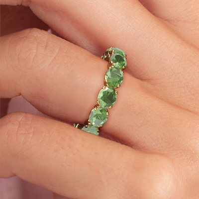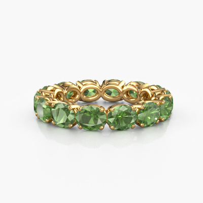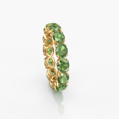 Das ist unser Vivienne OVL 5x4-Ring. Dieser spezielle Typ wird als Eternity ring bezeichnet und ist mit einer durchgehenden Linie von identisch geschliffenen Edelsteinen besetzt. Er ist aus 14 Karat Gold und mit kleineren Turmalin grün 5x4 mm besetzt. Dieser Gold Eternity Ring ist eine wunderschöne und sinnvolle Möglichkeit, Ihrem Antrag eine besondere Note zu verleihen. Die herrlich gleichmäßig geformten grüner Turmalin sind rund um den Ring eingefasst. Die identischen grüner Turmalin werden sorgfältig ausgewählt, um dem Ring eine maximale Wirkung zu verleihen. Denken Sie daran, dass wir natürliche Ressourcen verwenden. Daher sind kleine Unterschiede zwischen den Steinen üblich. Der besondere Effekt wird durch die präzise Positionierung der grüner Turmalin noch verstärkt. Dies erfordert äußerste Präzision und eine geschickte Hand. Für unsere erfahrenen Juweliere ist die pure Leidenschaft. Am Ende bekommen Sie einen Ring mit einer Reihe von grüner Turmalin, die weder Anfang noch Ende zu haben scheinen. Das perfekte Symbol für Ihre Liebe zu ihr! Ist sie nicht eine Schönheit? Mit unserer modernen Technik können wir Schmuckstücke von höchster Qualität mit größter Sorgfalt für Sie entwerfen und anpassen. Unsere Ringe sind immer um 30 Prozent günstiger als bei anderen Juwelieren. Wir fertigen Ringe auf Bestellung, also müssen wir keine großen Lager unterhalten. Wenn Sie ein bestimmtes Budget haben, beraten wir Sie gerne entsprechend.Unsere Online-Kollektion wird täglich um neue Schmuckdesigns ergänzt. Unser Team von leidenschaftlichen Designern ist bemüht, außergewöhnliche und vielfältige Designs zu kreieren. Haben Sie einen Ring gesehen, der Ihnen gefällt? Setzen Sie sich mit uns in Verbindung. Basierend auf einem guten Preis/Leistungsverhältnis machen wir Ihnen ein Angebot, das Sie nicht ablehnen können!Um es einfacher zu machen, bieten wir eine kostenlose 30-tägige Rücksendung.