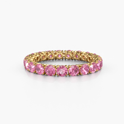 Das ist unser Vivienne 2.9-Ring. Dieser spezielle Typ wird als Eternity ring bezeichnet und ist mit einer durchgehenden Linie von identisch geschliffenen Edelsteinen besetzt. Er ist aus 14 Karat Gold und mit kleineren Pink Saphir 2.9 mm besetzt. Dieser Gold Eternity Ring ist eine wunderschöne und sinnvolle Möglichkeit, Ihrem Antrag eine besondere Note zu verleihen. Die herrlich gleichmäßig geformten Pink Saphir sind rund um den Ring eingefasst. Die identischen Pink Saphir werden sorgfältig ausgewählt, um dem Ring eine maximale Wirkung zu verleihen. Denken Sie daran, dass wir natürliche Ressourcen verwenden. Daher sind kleine Unterschiede zwischen den Steinen üblich. Der besondere Effekt wird durch die präzise Positionierung der Pink Saphir noch verstärkt. Dies erfordert äußerste Präzision und eine geschickte Hand. Für unsere erfahrenen Juweliere ist die pure Leidenschaft. Am Ende bekommen Sie einen Ring mit einer Reihe von Pink Saphir, die weder Anfang noch Ende zu haben scheinen. Das perfekte Symbol für Ihre Liebe zu ihr! Ist sie nicht eine Schönheit? Mit unserer modernen Technik können wir Schmuckstücke von höchster Qualität mit größter Sorgfalt für Sie entwerfen und anpassen. Unsere Ringe sind immer um 30 Prozent günstiger als bei anderen Juwelieren. Wir fertigen Ringe auf Bestellung, also müssen wir keine großen Lager unterhalten. Wenn Sie ein bestimmtes Budget haben, beraten wir Sie gerne entsprechend.Unsere Online-Kollektion wird täglich um neue Schmuckdesigns ergänzt. Unser Team von leidenschaftlichen Designern ist bemüht, außergewöhnliche und vielfältige Designs zu kreieren. Haben Sie einen Ring gesehen, der Ihnen gefällt? Setzen Sie sich mit uns in Verbindung. Basierend auf einem guten Preis/Leistungsverhältnis machen wir Ihnen ein Angebot, das Sie nicht ablehnen können!Um es einfacher zu machen, bieten wir eine kostenlose 30-tägige Rücksendung.