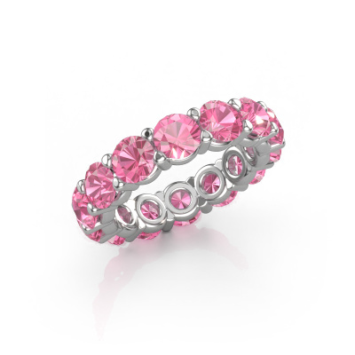 Das ist unser Heddy rnd 4.7-Ring. Dieser spezielle Typ wird als Eternity ring bezeichnet und ist mit einer durchgehenden Linie von identisch geschliffenen Edelsteinen besetzt. Er ist aus 14 Karat Weißgold und mit kleineren Pink Saphir 4.7 mm besetzt. Dieser Weißgold Eternity Ring ist eine wunderschöne und sinnvolle Möglichkeit, Ihrem Antrag eine besondere Note zu verleihen. Die herrlich gleichmäßig geformten Pink Saphir sind rund um den Ring eingefasst. Die identischen Pink Saphir werden sorgfältig ausgewählt, um dem Ring eine maximale Wirkung zu verleihen. Denken Sie daran, dass wir natürliche Ressourcen verwenden. Daher sind kleine Unterschiede zwischen den Steinen üblich. Der besondere Effekt wird durch die präzise Positionierung der Pink Saphir noch verstärkt. Dies erfordert äußerste Präzision und eine geschickte Hand. Für unsere erfahrenen Juweliere ist die pure Leidenschaft. Am Ende bekommen Sie einen Ring mit einer Reihe von Pink Saphir, die weder Anfang noch Ende zu haben scheinen. Das perfekte Symbol für Ihre Liebe zu ihr! Ist sie nicht eine Schönheit? Da wir unsere eigenen Ringe entwerfen und liefern, können wir Ihnen einen Ring zu einem Preis anbieten, den Sie nirgendwo anders finden. Ein Ring wird auf Bestellung angefertigt, wodurch kein überschüssiges Material anfällt. So können wir Ihnen ein gutes Angebot zum besten Preis machen. Wir verstehen, dass es sich riskant anfühlt, Ihren Ring online zu kaufen. Jedoch helfen wir Ihnen gerne beim Designprozess unter Berücksichtigung Ihres Budgets.Unser Team von talentierten, leidenschaftlichen Designern fügt unserer Online-Kollektion täglich neue Ringe-Designs hinzu. Unser Ziel dabei ist es, Ihnen eine große Vielfalt an Schmuckstücken anbieten zu können. Bitte zögern Sie nicht, ein Angebot anzufordern, wenn Sie spezielle Wünsche für Ihren Ring haben. Wir garantieren Ihnen ein Angebot, das Sie nicht ablehnen können.Um es einfacher zu machen, bieten wir eine kostenlose 30-tägige Rücksendung.