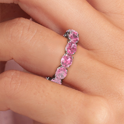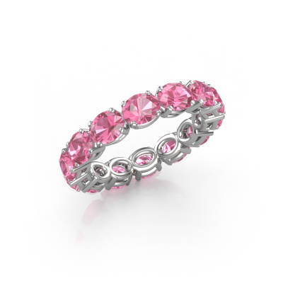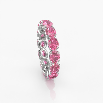 Das ist unser Vivienne OVL 5x4-Ring. Dieser spezielle Typ wird als Eternity ring bezeichnet und ist mit einer durchgehenden Linie von identisch geschliffenen Edelsteinen besetzt. Er ist aus 14 Karat Weißgold und mit kleineren Pink Saphir 5x4 mm besetzt. Dieser Weißgold Eternity Ring ist eine wunderschöne und sinnvolle Möglichkeit, Ihrem Antrag eine besondere Note zu verleihen. Die herrlich gleichmäßig geformten Pink Saphir sind rund um den Ring eingefasst. Die identischen Pink Saphir werden sorgfältig ausgewählt, um dem Ring eine maximale Wirkung zu verleihen. Denken Sie daran, dass wir natürliche Ressourcen verwenden. Daher sind kleine Unterschiede zwischen den Steinen üblich. Der besondere Effekt wird durch die präzise Positionierung der Pink Saphir noch verstärkt. Dies erfordert äußerste Präzision und eine geschickte Hand. Für unsere erfahrenen Juweliere ist die pure Leidenschaft. Am Ende bekommen Sie einen Ring mit einer Reihe von Pink Saphir, die weder Anfang noch Ende zu haben scheinen. Das perfekte Symbol für Ihre Liebe zu ihr! Ist sie nicht eine Schönheit? Mit unserer modernen Technik können wir Schmuckstücke von höchster Qualität mit größter Sorgfalt für Sie entwerfen und anpassen. Unsere Ringe sind immer um 30 Prozent günstiger als bei anderen Juwelieren. Wir fertigen Ringe auf Bestellung, also müssen wir keine großen Lager unterhalten. Wenn Sie ein bestimmtes Budget haben, beraten wir Sie gerne entsprechend.Unsere Online-Kollektion wird täglich um neue Schmuckdesigns ergänzt. Unser Team von leidenschaftlichen Designern ist bemüht, außergewöhnliche und vielfältige Designs zu kreieren. Haben Sie einen Ring gesehen, der Ihnen gefällt? Setzen Sie sich mit uns in Verbindung. Basierend auf einem guten Preis/Leistungsverhältnis machen wir Ihnen ein Angebot, das Sie nicht ablehnen können!Um es einfacher zu machen, bieten wir eine kostenlose 30-tägige Rücksendung.