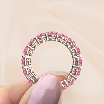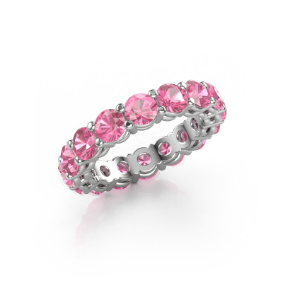 Das ist unser Michelle full 4.2-Ring. Dieser spezielle Typ wird als Eternity ring bezeichnet und ist mit einer durchgehenden Linie von identisch geschliffenen Edelsteinen besetzt. Er ist aus 14 Karat Weißgold und mit kleineren Pink Saphir 4.2 mm besetzt. Dieser Weißgold Eternity Ring ist eine wunderschöne und sinnvolle Möglichkeit, Ihrem Antrag eine besondere Note zu verleihen. Die herrlich gleichmäßig geformten Pink Saphir sind rund um den Ring eingefasst. Die identischen Pink Saphir werden sorgfältig ausgewählt, um dem Ring eine maximale Wirkung zu verleihen. Denken Sie daran, dass wir natürliche Ressourcen verwenden. Daher sind kleine Unterschiede zwischen den Steinen üblich. Der besondere Effekt wird durch die präzise Positionierung der Pink Saphir noch verstärkt. Dies erfordert äußerste Präzision und eine geschickte Hand. Für unsere erfahrenen Juweliere ist die pure Leidenschaft. Am Ende bekommen Sie einen Vorsteckring mit einer Reihe von Pink Saphir, die weder Anfang noch Ende zu haben scheinen. Das perfekte Symbol für Ihre Liebe zu ihr! Ist sie nicht eine Schönheit? Nachdem Sie Ihre Bestellung aufgegeben haben, beginnen unsere Goldschmiede mit dem kreativen Prozess der Herstellung Ihres Michelle full 4.2 Ring. Wir haben keine Lager. Das ist vorteilhaft, da diese Kosten nicht an Sie weitergegeben werden. Daher sind wir in der Lage, Schmuck zu außergewöhnlich niedrigen Preisen anzubieten.Unsere Online-Kollektion wird täglich um neue Schmuckdesigns ergänzt. Unser Team von leidenschaftlichen Designern ist bemüht, außergewöhnliche und vielfältige Designs zu kreieren. Haben Sie einen Ring gesehen, der Ihnen gefällt? Setzen Sie sich mit uns in Verbindung. Basierend auf einem guten Preis/Leistungsverhältnis machen wir Ihnen ein Angebot, das Sie nicht ablehnen können!Um es einfacher zu machen, bieten wir eine kostenlose 30-tägige Rücksendung.