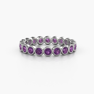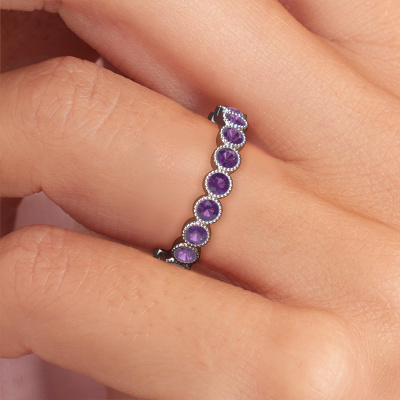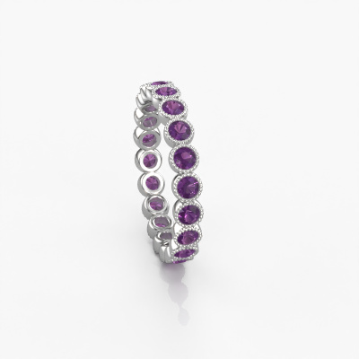 Das ist unser Mariam 0.05-Ring. Dieser spezielle Typ wird als eternity Ring bezeichnet und ist mit einer durchgehenden Linie von identisch geschliffenen Edelsteinen besetzt. Er ist aus Platin und mit kleineren 2.4 mm Amethysten besetzt. Die erstaunlichen Amethysten sind identisch in der Größe und im Ringband platziert. Unsere Amethysten werden sorgfältig ausgewählt, damit sie identisch sind und somit das beste Ergebnis erzielen. Um das beste Ergebnis zu erzielen, positioniert unser Juwelier alle Amethysten von Hand und mit größter Sorgfalt. Unsere Juweliere haben nur ein Ziel, nämlich den perfekten Ring zu kreieren. Deshalb lieben wir, was wir tun. Am Ende bekommen Sie einen atemberaubenden, moderne Platin Ring mit einer Reihe von Amethysten, die weder Anfang noch Ende zu haben scheinen. Das perfekte Symbol für Ihre unsterbliche Liebe zu ihr! Ist sie nicht eine Schönheit? Durch die Kombination modernster Technik mit uralter Handwerkskunst können wir alle Ringe in unserem eigenen Studio anfertigen. Jedes Schmuckstück wird auf Anfrage gefertigt. Das ist vorteilhaft, weil wir Ihnen dadurch einen Preis anbieten können, den Sie nirgendwo anders finden.