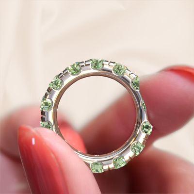 Das ist unser Jackie 4.7-Ring. Dieser spezielle Typ wird als eternity Ring bezeichnet und ist mit einer durchgehenden Linie von identisch geschliffenen Edelsteinen besetzt. Er ist aus Platin und mit kleineren 4.7 mm grüner Labor-Diamanten besetzt. Die erstaunlichen grüner Labor-Diamanten sind identisch in der Größe und im Ringband platziert. Unsere grüner Labor-Diamanten werden sorgfältig ausgewählt, damit sie identisch sind und somit das beste Ergebnis erzielen. Um das beste Ergebnis zu erzielen, positioniert unser Juwelier alle grüner Labor-Diamanten von Hand und mit größter Sorgfalt. Unsere Juweliere haben nur ein Ziel, nämlich den perfekten Ring zu kreieren. Deshalb lieben wir, was wir tun. Am Ende bekommen Sie einen atemberaubenden, exklusive Platin Vorsteckring mit einer Reihe von grüner Labor-Diamanten, die weder Anfang noch Ende zu haben scheinen. Das perfekte Symbol für Ihre unsterbliche Liebe zu ihr! Ist sie nicht eine Schönheit?