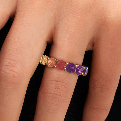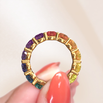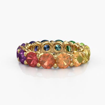 Das ist unser Heddy rnd 4.7-Ring. Dieser spezielle Typ wird als Eternity ring bezeichnet und ist mit einer durchgehenden Linie von identisch geschliffenen Edelsteinen besetzt. Er ist aus 14 Karat Gold und mit kleineren Rainbow Saphir 1 4.7 mm besetzt. Dieser Gold Eternity Ring ist eine wunderschöne und sinnvolle Möglichkeit, Ihrem Antrag eine besondere Note zu verleihen. Die herrlich gleichmäßig geformten Rainbow Saphir 1 sind rund um den Ring eingefasst. Die identischen Rainbow Saphir 1 werden sorgfältig ausgewählt, um dem Ring eine maximale Wirkung zu verleihen. Denken Sie daran, dass wir natürliche Ressourcen verwenden. Daher sind kleine Unterschiede zwischen den Steinen üblich. Der besondere Effekt wird durch die präzise Positionierung der Rainbow Saphir 1 noch verstärkt. Dies erfordert äußerste Präzision und eine geschickte Hand. Für unsere erfahrenen Juweliere ist die pure Leidenschaft. Am Ende bekommen Sie einen Ring mit einer Reihe von Rainbow Saphir 1, die weder Anfang noch Ende zu haben scheinen. Das perfekte Symbol für Ihre Liebe zu ihr! Ist sie nicht eine Schönheit? Da wir unsere eigenen Ringe entwerfen und liefern, können wir Ihnen einen Ring zu einem Preis anbieten, den Sie nirgendwo anders finden. Ein Ring wird auf Bestellung angefertigt, wodurch kein überschüssiges Material anfällt. So können wir Ihnen ein gutes Angebot zum besten Preis machen. Wir verstehen, dass es sich riskant anfühlt, Ihren Ring online zu kaufen. Jedoch helfen wir Ihnen gerne beim Designprozess unter Berücksichtigung Ihres Budgets.Unser Team von talentierten, leidenschaftlichen Designern fügt unserer Online-Kollektion täglich neue Ringe-Designs hinzu. Unser Ziel dabei ist es, Ihnen eine große Vielfalt an Schmuckstücken anbieten zu können. Bitte zögern Sie nicht, ein Angebot anzufordern, wenn Sie spezielle Wünsche für Ihren Ring haben. Wir garantieren Ihnen ein Angebot, das Sie nicht ablehnen können.Um es einfacher zu machen, bieten wir eine kostenlose 30-tägige Rücksendung.