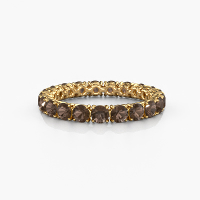 Das ist unser Vivienne 2.9-Ring. Dieser spezielle Typ wird als Eternity ring bezeichnet und ist mit einer durchgehenden Linie von identisch geschliffenen Edelsteinen besetzt. Er ist aus 14 Karat Gold und mit kleineren Rauchquarz 2.9 mm besetzt. Dieser Gold Eternity Ring ist eine wunderschöne und sinnvolle Möglichkeit, Ihrem Antrag eine besondere Note zu verleihen. Die herrlich gleichmäßig geformten Rauchquarz sind rund um den Ring eingefasst. Die identischen Rauchquarz werden sorgfältig ausgewählt, um dem Ring eine maximale Wirkung zu verleihen. Denken Sie daran, dass wir natürliche Ressourcen verwenden. Daher sind kleine Unterschiede zwischen den Steinen üblich. Der besondere Effekt wird durch die präzise Positionierung der Rauchquarz noch verstärkt. Dies erfordert äußerste Präzision und eine geschickte Hand. Für unsere erfahrenen Juweliere ist die pure Leidenschaft. Am Ende bekommen Sie einen Ring mit einer Reihe von Rauchquarz, die weder Anfang noch Ende zu haben scheinen. Das perfekte Symbol für Ihre Liebe zu ihr! Ist sie nicht eine Schönheit? Mit unserer modernen Technik können wir Schmuckstücke von höchster Qualität mit größter Sorgfalt für Sie entwerfen und anpassen. Unsere Ringe sind immer um 30 Prozent günstiger als bei anderen Juwelieren. Wir fertigen Ringe auf Bestellung, also müssen wir keine großen Lager unterhalten. Wenn Sie ein bestimmtes Budget haben, beraten wir Sie gerne entsprechend.Unsere Online-Kollektion wird täglich um neue Schmuckdesigns ergänzt. Unser Team von leidenschaftlichen Designern ist bemüht, außergewöhnliche und vielfältige Designs zu kreieren. Haben Sie einen Ring gesehen, der Ihnen gefällt? Setzen Sie sich mit uns in Verbindung. Basierend auf einem guten Preis/Leistungsverhältnis machen wir Ihnen ein Angebot, das Sie nicht ablehnen können!Um es einfacher zu machen, bieten wir eine kostenlose 30-tägige Rücksendung.