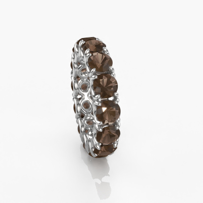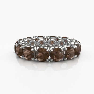 Das ist unser Estee 4.7-Ring. Dieser spezielle Typ wird als Eternity ring bezeichnet und ist mit einer durchgehenden Linie von identisch geschliffenen Edelsteinen besetzt. Er ist aus 14 Karat Weißgold und mit kleineren Rauchquarz 4.7 mm besetzt. Dieser Weißgold Eternity Ring ist eine wunderschöne und sinnvolle Möglichkeit, Ihrem Antrag eine besondere Note zu verleihen. Die herrlich gleichmäßig geformten Rauchquarz sind rund um den Ring eingefasst. Die identischen Rauchquarz werden sorgfältig ausgewählt, um dem Ring eine maximale Wirkung zu verleihen. Denken Sie daran, dass wir natürliche Ressourcen verwenden. Daher sind kleine Unterschiede zwischen den Steinen üblich. Der besondere Effekt wird durch die präzise Positionierung der Rauchquarz noch verstärkt. Dies erfordert äußerste Präzision und eine geschickte Hand. Für unsere erfahrenen Juweliere ist die pure Leidenschaft. Am Ende bekommen Sie einen Ring mit einer Reihe von Rauchquarz, die weder Anfang noch Ende zu haben scheinen. Das perfekte Symbol für Ihre Liebe zu ihr! Ist sie nicht eine Schönheit? Mit unserer modernen Technik können wir Schmuckstücke von höchster Qualität mit größter Sorgfalt für Sie entwerfen und anpassen. Unsere Ringe sind immer um 30 Prozent günstiger als bei anderen Juwelieren. Wir fertigen Ringe auf Bestellung, also müssen wir keine großen Lager unterhalten. Wenn Sie ein bestimmtes Budget haben, beraten wir Sie gerne entsprechend.