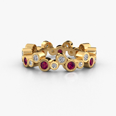 Das ist unser Tessa-Ring. Dieser spezielle Typ wird als Eternity ring bezeichnet und ist mit einer durchgehenden Linie von identisch geschliffenen Edelsteinen besetzt. Er ist aus 14 Karat Gold und mit kleineren Rhodolit 2.5 mm besetzt. Dieser Gold Eternity Ring ist eine wunderschöne und sinnvolle Möglichkeit, Ihrem Antrag eine besondere Note zu verleihen. Die herrlich gleichmäßig geformten Rhodolit sind rund um den Ring eingefasst. Die identischen Rhodolit werden sorgfältig ausgewählt, um dem Ring eine maximale Wirkung zu verleihen. Denken Sie daran, dass wir natürliche Ressourcen verwenden. Daher sind kleine Unterschiede zwischen den Steinen üblich. Der besondere Effekt wird durch die präzise Positionierung der Rhodolit noch verstärkt. Dies erfordert äußerste Präzision und eine geschickte Hand. Für unsere erfahrenen Juweliere ist die pure Leidenschaft. Am Ende bekommen Sie einen Ring mit einer Reihe von Rhodolit, die weder Anfang noch Ende zu haben scheinen. Das perfekte Symbol für Ihre Liebe zu ihr! Ist sie nicht eine Schönheit? Mit unserer modernen Technik können wir Schmuckstücke von höchster Qualität mit größter Sorgfalt für Sie entwerfen und anpassen. Unsere Ringe sind immer um 30 Prozent günstiger als bei anderen Juwelieren. Wir fertigen Ringe auf Bestellung, also müssen wir keine großen Lager unterhalten. Wenn Sie ein bestimmtes Budget haben, beraten wir Sie gerne entsprechend.Unsere talentierten, leidenschaftlichen Designer fügen unserer Online-Kollektion täglich neue Designs hinzu. Zusammen versuchen sie, eine vielfältige Kollektion feinster Schmuckstücke zu erstellen. Wenn Sie es vorziehen, einen Ring nach Ihrem eigenen Entwurf zu machen, können Sie gerne ein Angebot anfordern. Wir machen Ihnen ein großartiges Angebot, basierend auf Qualität und Preis.Um es einfacher zu machen, bieten wir eine kostenlose 30-tägige Rücksendung.
