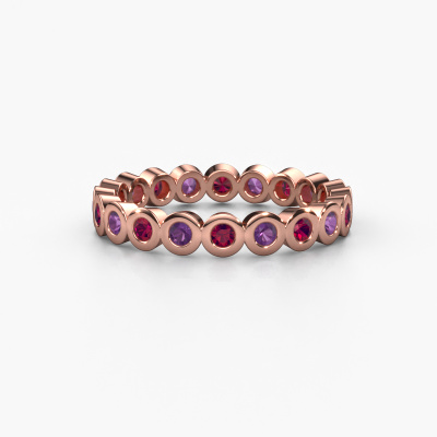 Das ist unser Edwina 1-Ring. Dieser spezielle Typ wird als Eternity ring bezeichnet und ist mit einer durchgehenden Linie von identisch geschliffenen Edelsteinen besetzt. Er ist aus 14 Karat Roségold und mit kleineren Rhodolit 2 mm besetzt. Dieser Roségold Eternity Ring ist eine wunderschöne und sinnvolle Möglichkeit, Ihrem Antrag eine besondere Note zu verleihen. Die herrlich gleichmäßig geformten Rhodolit sind rund um den Ring eingefasst. Die identischen Rhodolit werden sorgfältig ausgewählt, um dem Ring eine maximale Wirkung zu verleihen. Denken Sie daran, dass wir natürliche Ressourcen verwenden. Daher sind kleine Unterschiede zwischen den Steinen üblich. Der besondere Effekt wird durch die präzise Positionierung der Rhodolit noch verstärkt. Dies erfordert äußerste Präzision und eine geschickte Hand. Für unsere erfahrenen Juweliere ist die pure Leidenschaft. Am Ende bekommen Sie einen Vorsteckring mit einer Reihe von Rhodolit, die weder Anfang noch Ende zu haben scheinen. Das perfekte Symbol für Ihre Liebe zu ihr! Ist sie nicht eine Schönheit? Mit unserer modernen Technik können wir Schmuckstücke von höchster Qualität mit größter Sorgfalt für Sie entwerfen und anpassen. Unsere Ringe sind immer um 30 Prozent günstiger als bei anderen Juwelieren. Wir fertigen Ringe auf Bestellung, also müssen wir keine großen Lager unterhalten. Wenn Sie ein bestimmtes Budget haben, beraten wir Sie gerne entsprechend.Unsere Online-Kollektion wird täglich um neue Schmuckdesigns ergänzt. Unser Team von leidenschaftlichen Designern ist bemüht, außergewöhnliche und vielfältige Designs zu kreieren. Haben Sie einen Ring gesehen, der Ihnen gefällt? Setzen Sie sich mit uns in Verbindung. Basierend auf einem guten Preis/Leistungsverhältnis machen wir Ihnen ein Angebot, das Sie nicht ablehnen können!Um es einfacher zu machen, bieten wir eine kostenlose 30-tägige Rücksendung.