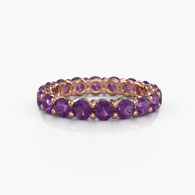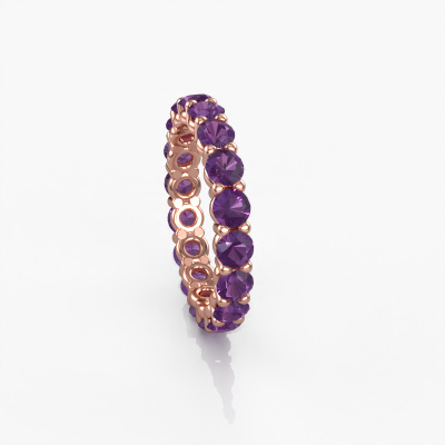 Das ist unser Heddy rnd 3.4-Ring. Dieser spezielle Typ wird als eternity Ring bezeichnet und ist mit einer durchgehenden Linie von identisch geschliffenen Edelsteinen besetzt. Er ist aus 14 Karat Roségold und mit kleineren 3.4 mm Amethysten besetzt. Die erstaunlichen Amethysten sind identisch in der Größe und im Ringband platziert. Unsere Amethysten werden sorgfältig ausgewählt, damit sie identisch sind und somit das beste Ergebnis erzielen. Um das beste Ergebnis zu erzielen, positioniert unser Juwelier alle Amethysten von Hand und mit größter Sorgfalt. Unsere Juweliere haben nur ein Ziel, nämlich den perfekten Ring zu kreieren. Deshalb lieben wir, was wir tun. Am Ende bekommen Sie einen atemberaubenden, moderne Roségold Ring mit einer Reihe von Amethysten, die weder Anfang noch Ende zu haben scheinen. Das perfekte Symbol für Ihre unsterbliche Liebe zu ihr! Ist sie nicht eine Schönheit? Nach Erhalt Ihrer Bestellung beginnen unsere Goldschmiede mit Leidenschaft den kreativen Prozess und fertigen Ihren Ring in unserem eigenen Studio. Da wir keine großen Lager haben, werden diese Kosten nicht an Sie weitergegeben. Unsere Preisgestaltung ist der Beweis dafür! Wir bieten Schmuck zum niedrigsten Preis, garantiert.Unsere talentierten, leidenschaftlichen Designer fügen unserer Online-Kollektion täglich neue Designs hinzu. Zusammen versuchen sie, eine vielfältige Kollektion feinster Schmuckstücke zu erstellen. Wenn Sie es vorziehen, einen Ring nach Ihrem eigenen Entwurf zu machen, können Sie gerne ein Angebot anfordern. Wir machen Ihnen ein großartiges Angebot, basierend auf Qualität und Preis.Um es einfacher zu machen, bieten wir eine kostenlose 30-tägige Rücksendung.