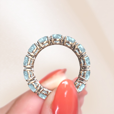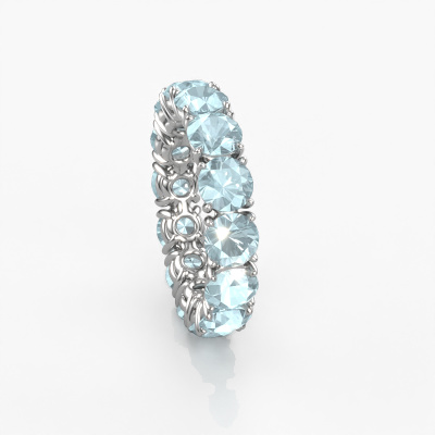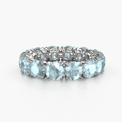 Das ist unser Vivienne 5.0-Ring. Dieser spezielle Typ wird als eternity Ring bezeichnet und ist mit einer durchgehenden Linie von identisch geschliffenen Edelsteinen besetzt. Er ist aus 14 Karat Weißgold und mit kleineren 5 mm Aquamarins besetzt. Die erstaunlichen Aquamarins sind identisch in der Größe und im Ringband platziert. Unsere Aquamarins werden sorgfältig ausgewählt, damit sie identisch sind und somit das beste Ergebnis erzielen. Um das beste Ergebnis zu erzielen, positioniert unser Juwelier alle Aquamarins von Hand und mit größter Sorgfalt. Unsere Juweliere haben nur ein Ziel, nämlich den perfekten Ring zu kreieren. Deshalb lieben wir, was wir tun. Am Ende bekommen Sie einen atemberaubenden, exklusive Weißgold Ring mit einer Reihe von Aquamarins, die weder Anfang noch Ende zu haben scheinen. Das perfekte Symbol für Ihre unsterbliche Liebe zu ihr! Ist sie nicht eine Schönheit? Mit unserer modernen Technik können wir Schmuckstücke von höchster Qualität mit größter Sorgfalt für Sie entwerfen und anpassen. Unsere Ringe sind immer um 30 Prozent günstiger als bei anderen Juwelieren. Wir fertigen Ringe auf Bestellung, also müssen wir keine großen Lager unterhalten. Wenn Sie ein bestimmtes Budget haben, beraten wir Sie gerne entsprechend.Unsere Online-Kollektion wird täglich um neue Schmuckdesigns ergänzt. Unser Team von leidenschaftlichen Designern ist bemüht, außergewöhnliche und vielfältige Designs zu kreieren. Haben Sie einen Ring gesehen, der Ihnen gefällt? Setzen Sie sich mit uns in Verbindung. Basierend auf einem guten Preis/Leistungsverhältnis machen wir Ihnen ein Angebot, das Sie nicht ablehnen können!Um es einfacher zu machen, bieten wir eine kostenlose 30-tägige Rücksendung.