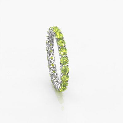 Das ist unser Vivienne 2.7-Ring. Dieser spezielle Typ wird als eternity Ring bezeichnet und ist mit einer durchgehenden Linie von identisch geschliffenen Edelsteinen besetzt. Er ist aus 14 Karat Weißgold und mit kleineren 2.7 mm Peridot besetzt. Die erstaunlichen Peridot sind identisch in der Größe und im Ringband platziert. Unsere Peridot werden sorgfältig ausgewählt, damit sie identisch sind und somit das beste Ergebnis erzielen. Um das beste Ergebnis zu erzielen, positioniert unser Juwelier alle Peridot von Hand und mit größter Sorgfalt. Unsere Juweliere haben nur ein Ziel, nämlich den perfekten Ring zu kreieren. Deshalb lieben wir, was wir tun. Am Ende bekommen Sie einen atemberaubenden, klassische Weißgold Ring mit einer Reihe von Peridot, die weder Anfang noch Ende zu haben scheinen. Das perfekte Symbol für Ihre unsterbliche Liebe zu ihr! Ist sie nicht eine Schönheit? Nach Erhalt Ihrer Bestellung beginnen unsere Goldschmiede mit Leidenschaft den kreativen Prozess und fertigen Ihren Ring in unserem eigenen Studio. Da wir keine großen Lager haben, werden diese Kosten nicht an Sie weitergegeben. Unsere Preisgestaltung ist der Beweis dafür! Wir bieten Schmuck zum niedrigsten Preis, garantiert.Unsere talentierten, leidenschaftlichen Designer fügen unserer Online-Kollektion täglich neue Designs hinzu. Zusammen versuchen sie, eine vielfältige Kollektion feinster Schmuckstücke zu erstellen. Wenn Sie es vorziehen, einen Ring nach Ihrem eigenen Entwurf zu machen, können Sie gerne ein Angebot anfordern. Wir machen Ihnen ein großartiges Angebot, basierend auf Qualität und Preis.Um es einfacher zu machen, bieten wir eine kostenlose 30-tägige Rücksendung.