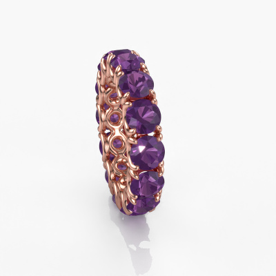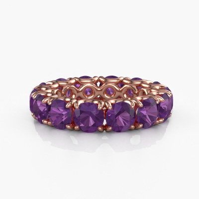 Das ist unser Estee 5.0-Ring. Dieser spezielle Typ wird als eternity Ring bezeichnet und ist mit einer durchgehenden Linie von identisch geschliffenen Edelsteinen besetzt. Er ist aus 14 Karat Roségold und mit kleineren 5 mm Amethysten besetzt. Die erstaunlichen Amethysten sind identisch in der Größe und im Ringband platziert. Unsere Amethysten werden sorgfältig ausgewählt, damit sie identisch sind und somit das beste Ergebnis erzielen. Um das beste Ergebnis zu erzielen, positioniert unser Juwelier alle Amethysten von Hand und mit größter Sorgfalt. Unsere Juweliere haben nur ein Ziel, nämlich den perfekten Ring zu kreieren. Deshalb lieben wir, was wir tun. Am Ende bekommen Sie einen atemberaubenden, exklusive Roségold Ring mit einer Reihe von Amethysten, die weder Anfang noch Ende zu haben scheinen. Das perfekte Symbol für Ihre unsterbliche Liebe zu ihr! Ist sie nicht eine Schönheit? Haben Sie ein bestimmtes Budget? Sie können uns gerne kontaktieren, damit wir Ihre Optionen besprechen können. Wir bieten unsere Ringe zum garantiert besten Preis, denn wir fertigen sie auf Bestellung. Solche Preise finden Sie nirgendwo anders!Unsere talentierten, leidenschaftlichen Designer fügen unserer Online-Kollektion täglich neue Designs hinzu. Zusammen versuchen sie, eine vielfältige Kollektion feinster Schmuckstücke zu erstellen. Wenn Sie es vorziehen, einen Ring nach Ihrem eigenen Entwurf zu machen, können Sie gerne ein Angebot anfordern. Wir machen Ihnen ein großartiges Angebot, basierend auf Qualität und Preis.Um es einfacher zu machen, bieten wir eine kostenlose 30-tägige Rücksendung.
