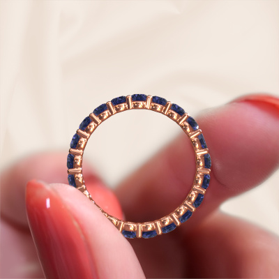 Das ist unser Heddy rnd 2.9-Ring. Dieser spezielle Typ wird als eternity Ring bezeichnet und ist mit einer durchgehenden Linie von identisch geschliffenen Edelsteinen besetzt. Er ist aus 14 Karat Roségold und mit kleineren 2.9 mm Saphir besetzt. Die erstaunlichen Saphir sind identisch in der Größe und im Ringband platziert. Unsere Saphir werden sorgfältig ausgewählt, damit sie identisch sind und somit das beste Ergebnis erzielen. Um das beste Ergebnis zu erzielen, positioniert unser Juwelier alle Saphir von Hand und mit größter Sorgfalt. Unsere Juweliere haben nur ein Ziel, nämlich den perfekten Ring zu kreieren. Deshalb lieben wir, was wir tun. Am Ende bekommen Sie einen atemberaubenden, klassische Roségold Ring mit einer Reihe von Saphir, die weder Anfang noch Ende zu haben scheinen. Das perfekte Symbol für Ihre unsterbliche Liebe zu ihr! Ist sie nicht eine Schönheit? Durch die Kombination modernster Technik mit uralter Handwerkskunst können wir alle Ringe in unserem eigenen Studio anfertigen. Jedes Schmuckstück wird auf Anfrage gefertigt. Das ist vorteilhaft, weil wir Ihnen dadurch einen Preis anbieten können, den Sie nirgendwo anders finden.
