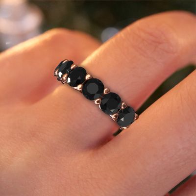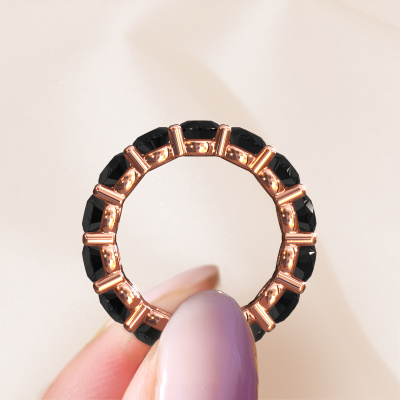 Das ist unser Heddy rnd 5.0-Ring. Dieser spezielle Typ wird als eternity Ring bezeichnet und ist mit einer durchgehenden Linie von identisch geschliffenen Edelsteinen besetzt. Er ist aus 14 Karat Roségold und mit kleineren 0.60 crt Schwarze Diamanten besetzt. Die erstaunlichen Schwarze Diamanten sind identisch in der Größe und im Ringband platziert. Unsere Schwarze Diamanten werden sorgfältig ausgewählt, damit sie identisch sind und somit das beste Ergebnis erzielen. Um das beste Ergebnis zu erzielen, positioniert unser Juwelier alle Schwarze Diamanten von Hand und mit größter Sorgfalt. Unsere Juweliere haben nur ein Ziel, nämlich den perfekten Ring zu kreieren. Deshalb lieben wir, was wir tun. Am Ende bekommen Sie einen atemberaubenden, exklusive Roségold Ring mit einer Reihe von Schwarze Diamanten, die weder Anfang noch Ende zu haben scheinen. Das perfekte Symbol für Ihre unsterbliche Liebe zu ihr! Ist sie nicht eine Schönheit? Durch die Kombination modernster Technik mit uralter Handwerkskunst können wir alle Ringe in unserem eigenen Studio anfertigen. Jedes Schmuckstück wird auf Anfrage gefertigt. Das ist vorteilhaft, weil wir Ihnen dadurch einen Preis anbieten können, den Sie nirgendwo anders finden.