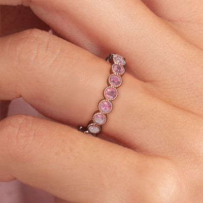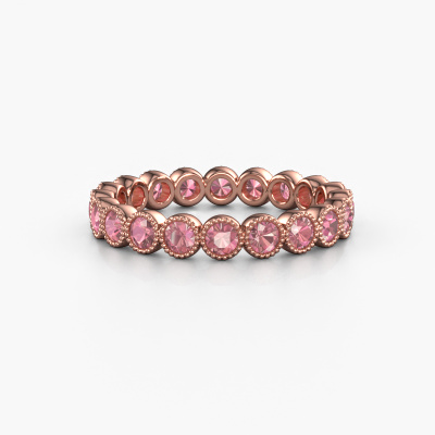 Das ist unser Mariam 0.05-Ring. Dieser spezielle Typ wird als eternity Ring bezeichnet und ist mit einer durchgehenden Linie von identisch geschliffenen Edelsteinen besetzt. Er ist aus 14 Karat Roségold und mit kleineren 2.4 mm Turmalin rosa besetzt. Die erstaunlichen Turmalin rosa sind identisch in der Größe und im Ringband platziert. Unsere Turmalin rosa werden sorgfältig ausgewählt, damit sie identisch sind und somit das beste Ergebnis erzielen. Um das beste Ergebnis zu erzielen, positioniert unser Juwelier alle Turmalin rosa von Hand und mit größter Sorgfalt. Unsere Juweliere haben nur ein Ziel, nämlich den perfekten Ring zu kreieren. Deshalb lieben wir, was wir tun. Am Ende bekommen Sie einen atemberaubenden, moderne Roségold Ring mit einer Reihe von Turmalin rosa, die weder Anfang noch Ende zu haben scheinen. Das perfekte Symbol für Ihre unsterbliche Liebe zu ihr! Ist sie nicht eine Schönheit? Durch die Kombination modernster Technik mit uralter Handwerkskunst können wir alle Ringe in unserem eigenen Studio anfertigen. Jedes Schmuckstück wird auf Anfrage gefertigt. Das ist vorteilhaft, weil wir Ihnen dadurch einen Preis anbieten können, den Sie nirgendwo anders finden.