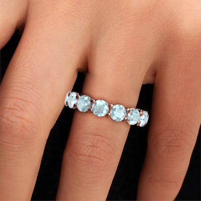 Das ist unser Michelle full 4.7-Ring. Dieser spezielle Typ wird als eternity Ring bezeichnet und ist mit einer durchgehenden Linie von identisch geschliffenen Edelsteinen besetzt. Er ist aus 14 Karat Roségold und mit kleineren 4.7 mm Aquamarins besetzt. Die erstaunlichen Aquamarins sind identisch in der Größe und im Ringband platziert. Unsere Aquamarins werden sorgfältig ausgewählt, damit sie identisch sind und somit das beste Ergebnis erzielen. Um das beste Ergebnis zu erzielen, positioniert unser Juwelier alle Aquamarins von Hand und mit größter Sorgfalt. Unsere Juweliere haben nur ein Ziel, nämlich den perfekten Ring zu kreieren. Deshalb lieben wir, was wir tun. Am Ende bekommen Sie einen atemberaubenden, exklusive Roségold Vorsteckring mit einer Reihe von Aquamarins, die weder Anfang noch Ende zu haben scheinen. Das perfekte Symbol für Ihre unsterbliche Liebe zu ihr! Ist sie nicht eine Schönheit? Da wir unsere eigenen Ringe entwerfen und liefern, können wir Ihnen einen Ring zu einem Preis anbieten, den Sie nirgendwo anders finden. Ein Ring wird auf Bestellung angefertigt, wodurch kein überschüssiges Material anfällt. So können wir Ihnen ein gutes Angebot zum besten Preis machen. Wir verstehen, dass es sich riskant anfühlt, Ihren Ring online zu kaufen. Jedoch helfen wir Ihnen gerne beim Designprozess unter Berücksichtigung Ihres Budgets.Unser Team von talentierten, leidenschaftlichen Designern fügt unserer Online-Kollektion täglich neue Ring-Designs hinzu. Unser Ziel dabei ist es, Ihnen eine große Vielfalt an Schmuckstücken anbieten zu können. Bitte zögern Sie nicht, ein Angebot anzufordern, wenn Sie spezielle Wünsche für Ihren Ring haben. Wir garantieren Ihnen ein Angebot, das Sie nicht ablehnen können.Um es einfacher zu machen, bieten wir eine kostenlose 30-tägige Rücksendung.