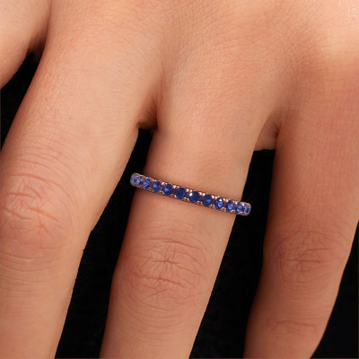Das ist unser Jackie 2.0-Ring. Dieser spezielle Typ wird als eternity Ring bezeichnet und ist mit einer durchgehenden Linie von identisch geschliffenen Edelsteinen besetzt. Er ist aus 14 Karat Roségold und mit kleineren 2 mm Saphir besetzt. Die erstaunlichen Saphir sind identisch in der Größe und im Ringband platziert. Unsere Saphir werden sorgfältig ausgewählt, damit sie identisch sind und somit das beste Ergebnis erzielen. Um das beste Ergebnis zu erzielen, positioniert unser Juwelier alle Saphir von Hand und mit größter Sorgfalt. Unsere Juweliere haben nur ein Ziel, nämlich den perfekten Ring zu kreieren. Deshalb lieben wir, was wir tun. Am Ende bekommen Sie einen atemberaubenden, moderne Roségold Vorsteckring mit einer Reihe von Saphir, die weder Anfang noch Ende zu haben scheinen. Das perfekte Symbol für Ihre unsterbliche Liebe zu ihr! Ist sie nicht eine Schönheit? Mit unserer modernen Technik können wir Schmuckstücke von höchster Qualität mit größter Sorgfalt für Sie entwerfen und anpassen. Unsere Ringe sind immer um 30 Prozent günstiger als bei anderen Juwelieren. Wir fertigen Ringe auf Bestellung, also müssen wir keine großen Lager unterhalten. Wenn Sie ein bestimmtes Budget haben, beraten wir Sie gerne entsprechend.Unsere Online-Kollektion wird täglich um neue Schmuckdesigns ergänzt. Unser Team von leidenschaftlichen Designern ist bemüht, außergewöhnliche und vielfältige Designs zu kreieren. Haben Sie einen Ring gesehen, der Ihnen gefällt? Setzen Sie sich mit uns in Verbindung. Basierend auf einem guten Preis/Leistungsverhältnis machen wir Ihnen ein Angebot, das Sie nicht ablehnen können!Um es einfacher zu machen, bieten wir eine kostenlose 30-tägige Rücksendung.