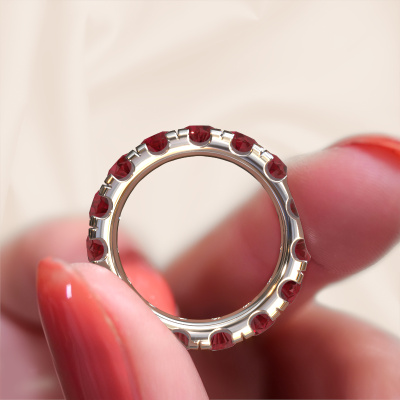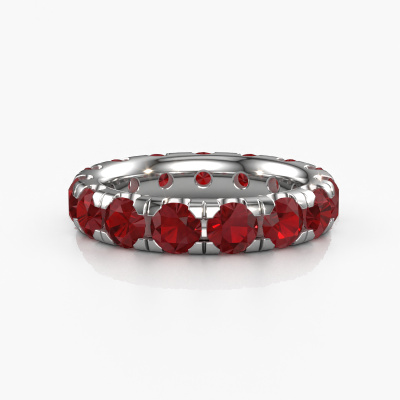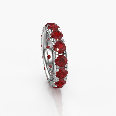 Das ist unser Jackie 4.2-Ring. Dieser spezielle Typ wird als Eternity ring bezeichnet und ist mit einer durchgehenden Linie von identisch geschliffenen Edelsteinen besetzt. Er ist aus 14 Karat Weißgold und mit kleineren Rubin 4.2 mm besetzt. Dieser Weißgold Eternity Ring ist eine wunderschöne und sinnvolle Möglichkeit, Ihrem Antrag eine besondere Note zu verleihen. Die herrlich gleichmäßig geformten Rubin sind rund um den Ring eingefasst. Die identischen Rubin werden sorgfältig ausgewählt, um dem Ring eine maximale Wirkung zu verleihen. Denken Sie daran, dass wir natürliche Ressourcen verwenden. Daher sind kleine Unterschiede zwischen den Steinen üblich. Der besondere Effekt wird durch die präzise Positionierung der Rubin noch verstärkt. Dies erfordert äußerste Präzision und eine geschickte Hand. Für unsere erfahrenen Juweliere ist die pure Leidenschaft. Am Ende bekommen Sie einen Vorsteckring mit einer Reihe von Rubin, die weder Anfang noch Ende zu haben scheinen. Das perfekte Symbol für Ihre Liebe zu ihr! Ist sie nicht eine Schönheit? Nachdem Sie Ihre Bestellung aufgegeben haben, beginnen unsere Goldschmiede mit dem kreativen Prozess der Herstellung Ihres Jackie 4.2 Ring. Wir haben keine Lager. Das ist vorteilhaft, da diese Kosten nicht an Sie weitergegeben werden. Daher sind wir in der Lage, Schmuck zu außergewöhnlich niedrigen Preisen anzubieten.Unsere Online-Kollektion wird täglich um neue Schmuckdesigns ergänzt. Unser Team von leidenschaftlichen Designern ist bemüht, außergewöhnliche und vielfältige Designs zu kreieren. Haben Sie einen Ring gesehen, der Ihnen gefällt? Setzen Sie sich mit uns in Verbindung. Basierend auf einem guten Preis/Leistungsverhältnis machen wir Ihnen ein Angebot, das Sie nicht ablehnen können!Um es einfacher zu machen, bieten wir eine kostenlose 30-tägige Rücksendung.