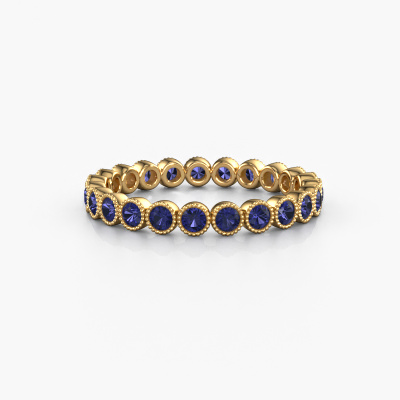 Das ist unser Mariam 0.03-Ring. Dieser spezielle Typ wird als Eternity ring bezeichnet und ist mit einer durchgehenden Linie von identisch geschliffenen Edelsteinen besetzt. Er ist aus 14 Karat Gold und mit kleineren Saphir 2 mm besetzt. Dieser Gold Eternity Ring ist eine wunderschöne und sinnvolle Möglichkeit, Ihrem Antrag eine besondere Note zu verleihen. Die herrlich gleichmäßig geformten Saphir sind rund um den Ring eingefasst. Die identischen Saphir werden sorgfältig ausgewählt, um dem Ring eine maximale Wirkung zu verleihen. Denken Sie daran, dass wir natürliche Ressourcen verwenden. Daher sind kleine Unterschiede zwischen den Steinen üblich. Der besondere Effekt wird durch die präzise Positionierung der Saphir noch verstärkt. Dies erfordert äußerste Präzision und eine geschickte Hand. Für unsere erfahrenen Juweliere ist die pure Leidenschaft. Am Ende bekommen Sie einen Ring mit einer Reihe von Saphir, die weder Anfang noch Ende zu haben scheinen. Das perfekte Symbol für Ihre Liebe zu ihr! Ist sie nicht eine Schönheit? Da wir unsere eigenen Ringe entwerfen und liefern, können wir Ihnen einen Ring zu einem Preis anbieten, den Sie nirgendwo anders finden. Ein Ring wird auf Bestellung angefertigt, wodurch kein überschüssiges Material anfällt. So können wir Ihnen ein gutes Angebot zum besten Preis machen. Wir verstehen, dass es sich riskant anfühlt, Ihren Ring online zu kaufen. Jedoch helfen wir Ihnen gerne beim Designprozess unter Berücksichtigung Ihres Budgets.Unser Team von talentierten, leidenschaftlichen Designern fügt unserer Online-Kollektion täglich neue Ringe-Designs hinzu. Unser Ziel dabei ist es, Ihnen eine große Vielfalt an Schmuckstücken anbieten zu können. Bitte zögern Sie nicht, ein Angebot anzufordern, wenn Sie spezielle Wünsche für Ihren Ring haben. Wir garantieren Ihnen ein Angebot, das Sie nicht ablehnen können.Um es einfacher zu machen, bieten wir eine kostenlose 30-tägige Rücksendung.