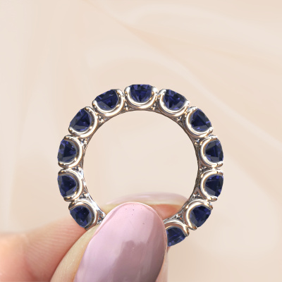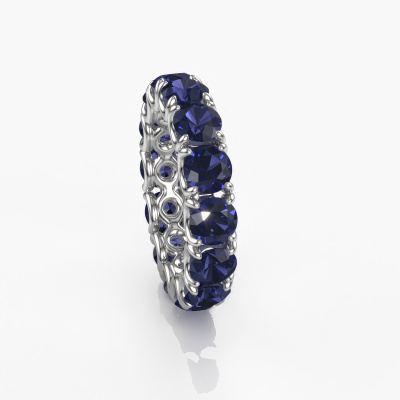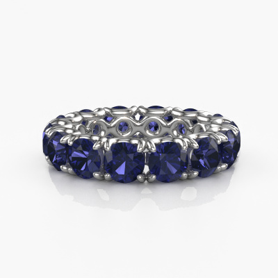 Das ist unser Estee 4.7-Ring. Dieser spezielle Typ wird als Eternity ring bezeichnet und ist mit einer durchgehenden Linie von identisch geschliffenen Edelsteinen besetzt. Er ist aus 14 Karat Weißgold und mit kleineren Saphir 4.7 mm besetzt. Dieser Weißgold Eternity Ring ist eine wunderschöne und sinnvolle Möglichkeit, Ihrem Antrag eine besondere Note zu verleihen. Die herrlich gleichmäßig geformten Saphir sind rund um den Ring eingefasst. Die identischen Saphir werden sorgfältig ausgewählt, um dem Ring eine maximale Wirkung zu verleihen. Denken Sie daran, dass wir natürliche Ressourcen verwenden. Daher sind kleine Unterschiede zwischen den Steinen üblich. Der besondere Effekt wird durch die präzise Positionierung der Saphir noch verstärkt. Dies erfordert äußerste Präzision und eine geschickte Hand. Für unsere erfahrenen Juweliere ist die pure Leidenschaft. Am Ende bekommen Sie einen Ring mit einer Reihe von Saphir, die weder Anfang noch Ende zu haben scheinen. Das perfekte Symbol für Ihre Liebe zu ihr! Ist sie nicht eine Schönheit? Mit unserer modernen Technik können wir Schmuckstücke von höchster Qualität mit größter Sorgfalt für Sie entwerfen und anpassen. Unsere Ringe sind immer um 30 Prozent günstiger als bei anderen Juwelieren. Wir fertigen Ringe auf Bestellung, also müssen wir keine großen Lager unterhalten. Wenn Sie ein bestimmtes Budget haben, beraten wir Sie gerne entsprechend.